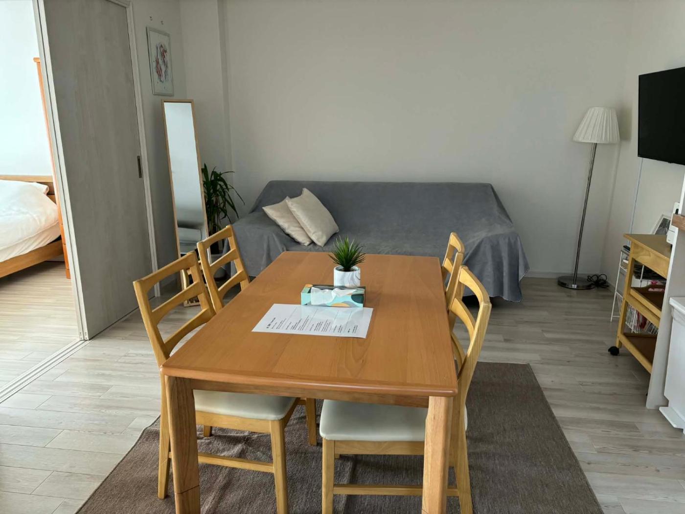 Two-Bedroom Apartment. Guests will have a special experience as the apartment provides a hot tub. This air-conditioned apartment consists of 1 living room, 2 separate bedrooms and 1 bathroom with a bath or a shower. The apartments kitchen, which features a refrigerator and a microwave, is available for cooking and storing food. The apartment is equipped with a flat-screen TV, a washing machine, tatami, as well as heating. The unit offers 2 beds and 2 futons.