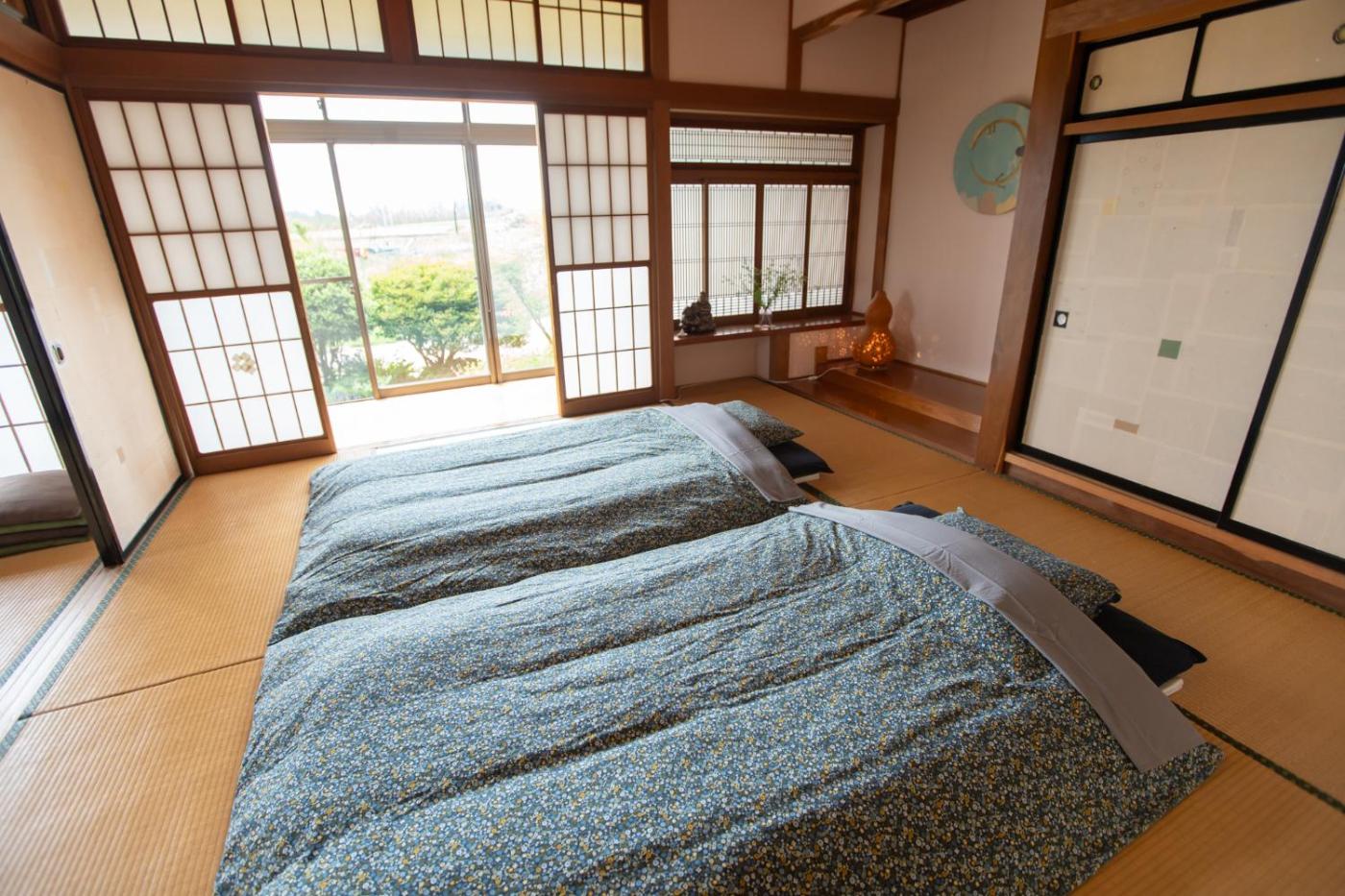 Quadruple Room with Mountain View. In the kitchen, guests will find a stovetop, a refrigerator, kitchenware and a microwave. The quadruple room provides a washing machine, tatami, a terrace with garden views as well as a shared bathroom featuring a bath. The unit offers 4 futons.
