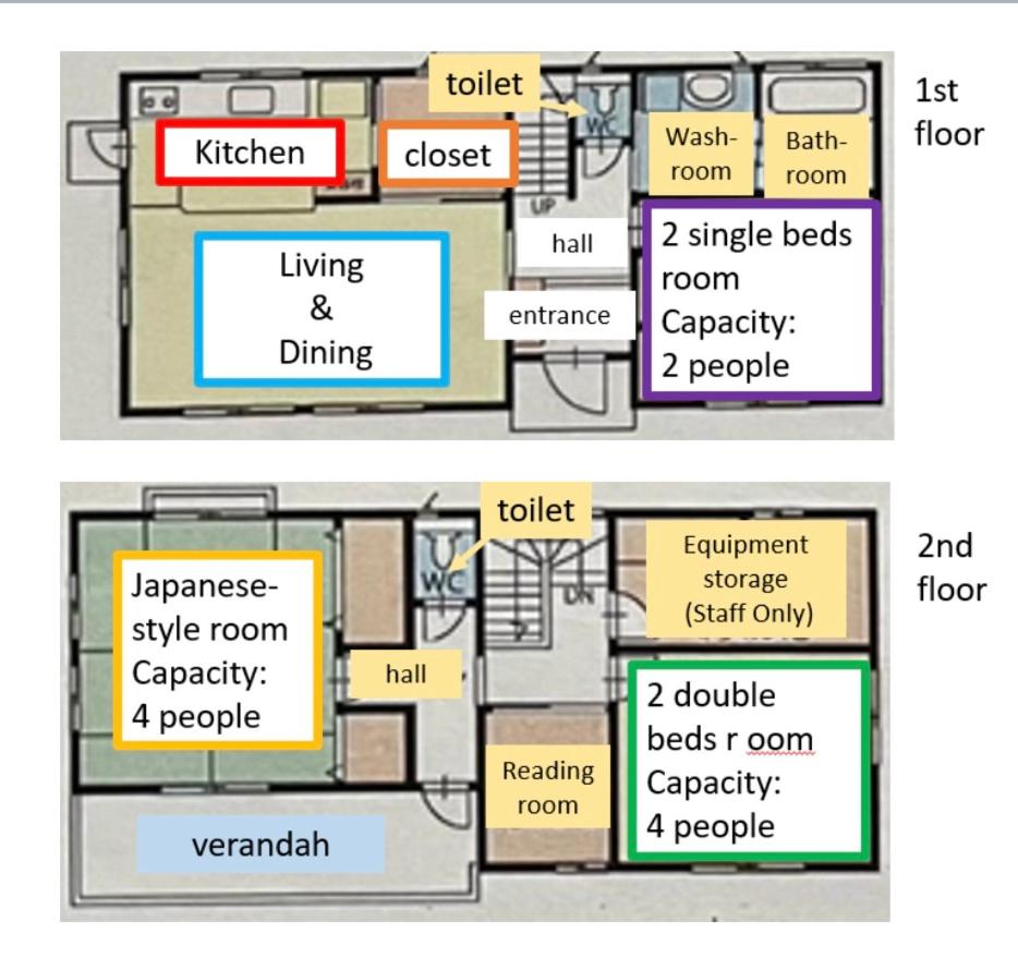 Three-Bedroom Villa. The air-conditioned villa features 3 bedrooms and 1 bathroom with a bath and a shower. The well-fitted kitchen has a refrigerator, kitchenware, a microwave and a toaster. The villa provides a washing machine, tatami, a tea and coffee maker, a flat-screen TV with streaming services, as well as city views. The unit offers 4 beds and 4 futons.