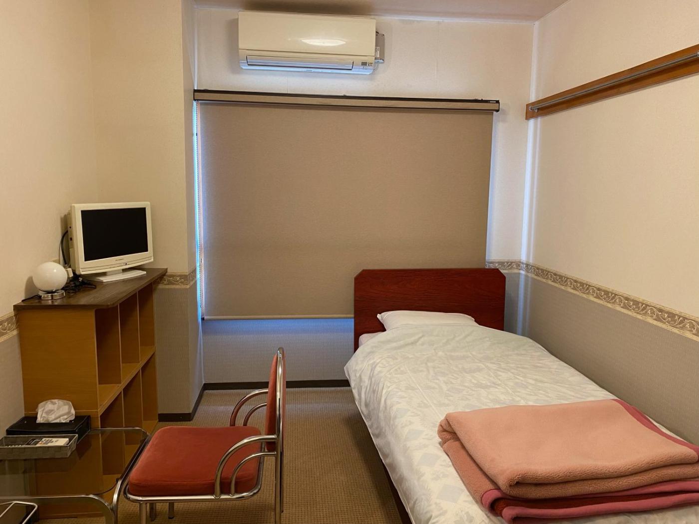 Japanese-Style Room with Shared Bathroom. Rooms have a tatami (woven-straw) floor and traditional futon bedding. They come with a TV and air conditioning, while toilets and bathrooms are shared. ;