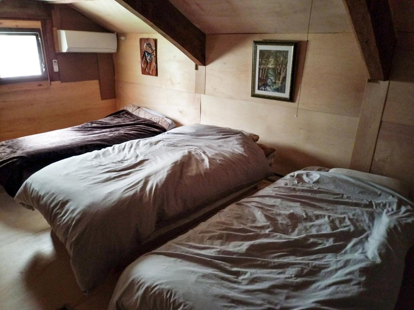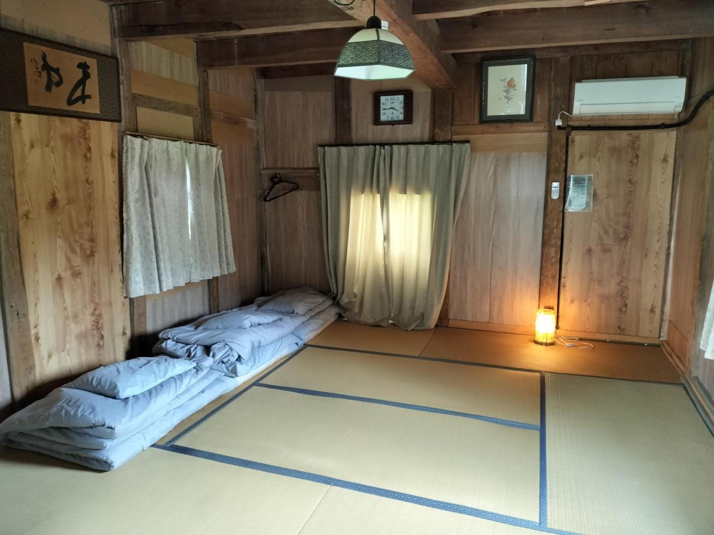 Two-Bedroom Villa. The villa offers an electric kettle, a barbecue, as well as a shared bathroom featuring a hairdryer and slippers. The villa provides air conditioning, a washing machine, tatami, a private entrance, as well as a flat-screen TV. The unit offers 2 beds and 3 futons.
