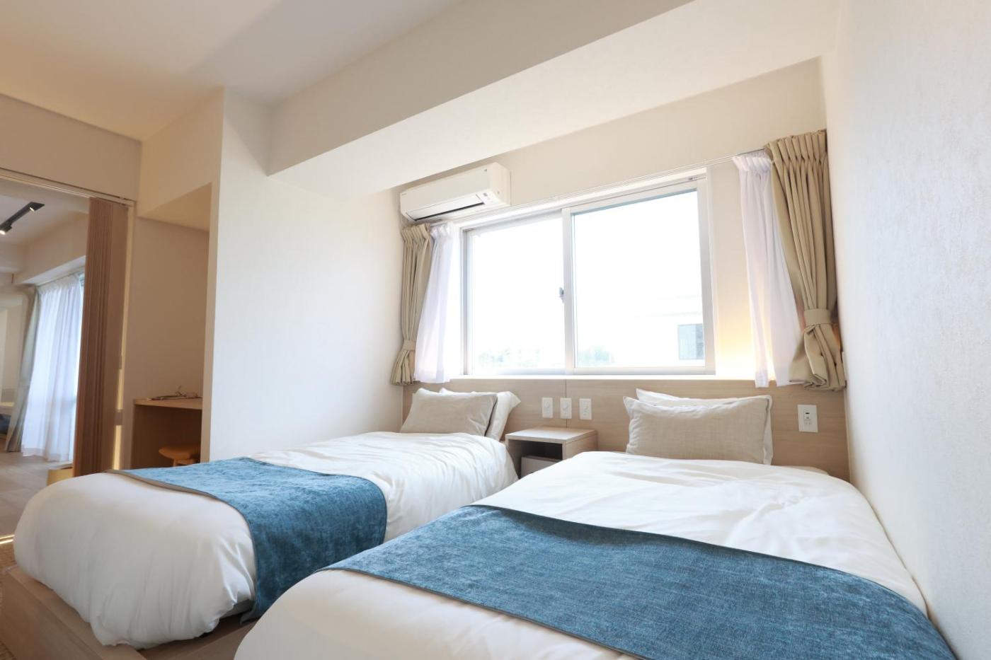 Junior Suite with Sauna. This suite features a sauna. This spacious suite features 1 living room, 2 separate bedrooms and 1 bathroom with a bath and free toiletries. The well-equipped kitchen has a stovetop, a refrigerator, kitchenware and an electric kettle. The air-conditioned suite features a flat-screen TV with streaming services, a washing machine, tatami, a wardrobe as well as city views. The unit has 4 beds. ;