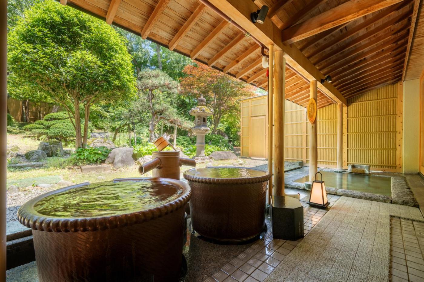 Japanese Style Room with Hot Spring Bath - Non-Smoking - 311. Guests will have a special experience as this family room provides a private open-air bath. The family room includes a private bathroom, well-fitted with a bath, a shower, a bidet, a hairdryer and slippers. The air-conditioned family room offers a flat-screen TV with satellite channels, tatami, a wardrobe, a safe deposit box as well as garden views. The unit offers 4 futons. ;