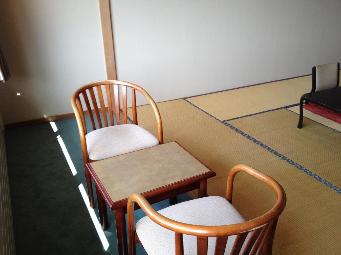 Standard Japanese Style Room with Private toilet. The quadruple room features air conditioning, tatami, yukata, a flat-screen TV, as well as lake views. The unit has 4 futons. ;