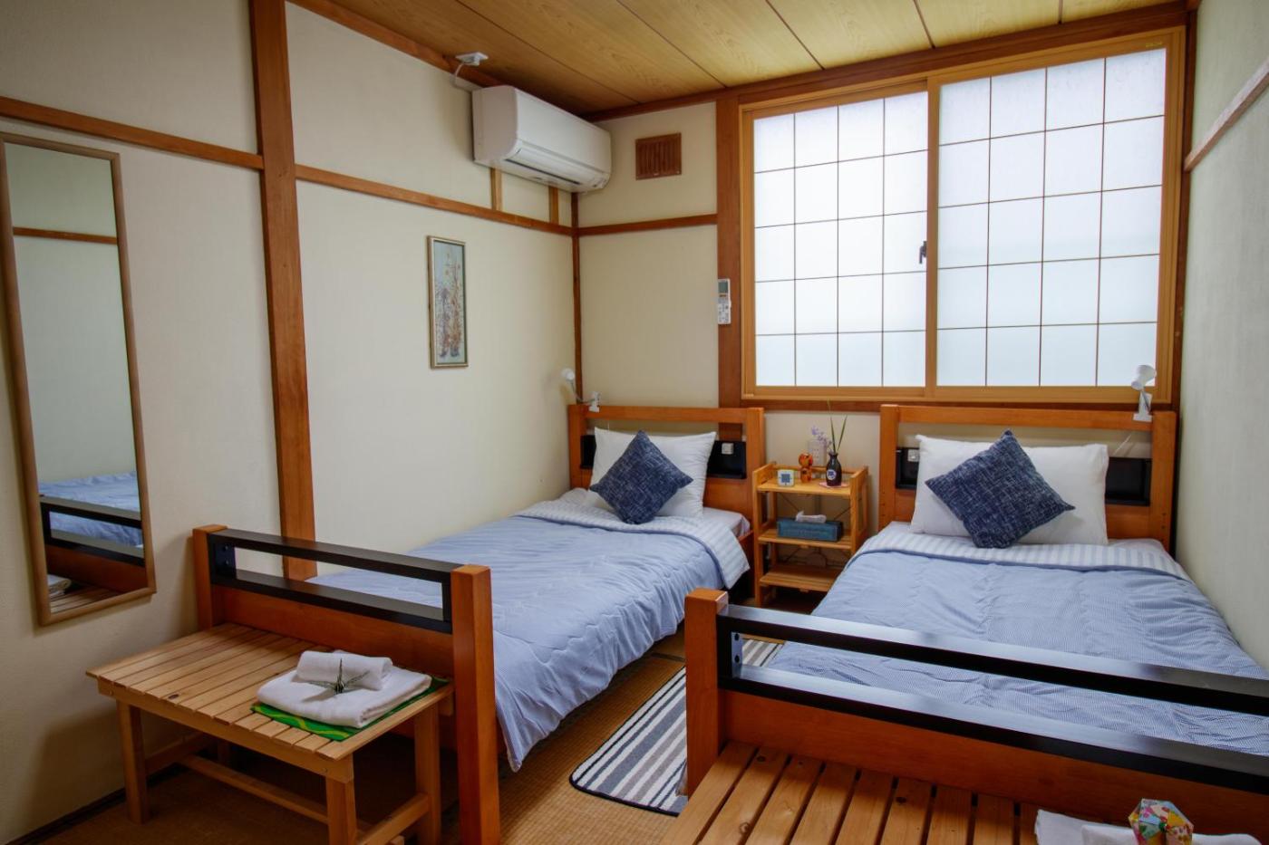 Twin Room. This twin room is air-conditioned and has a shared bathroom, tatami and garden views. The unit has 2 beds. ;