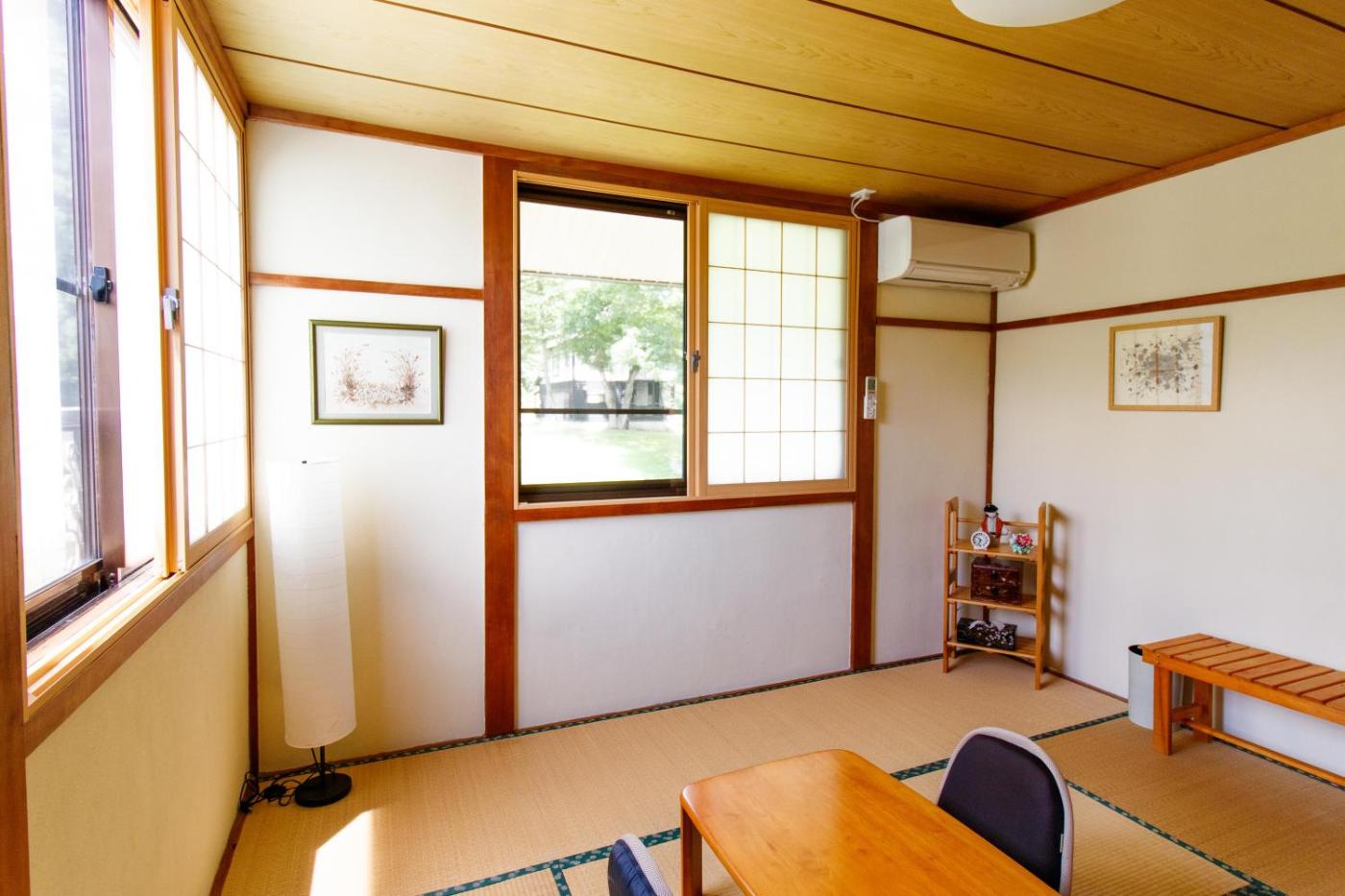 Japanese Style Room. This triple room is air-conditioned and features a shared bathroom, tatami and garden views. The unit offers 2 futons. ;
