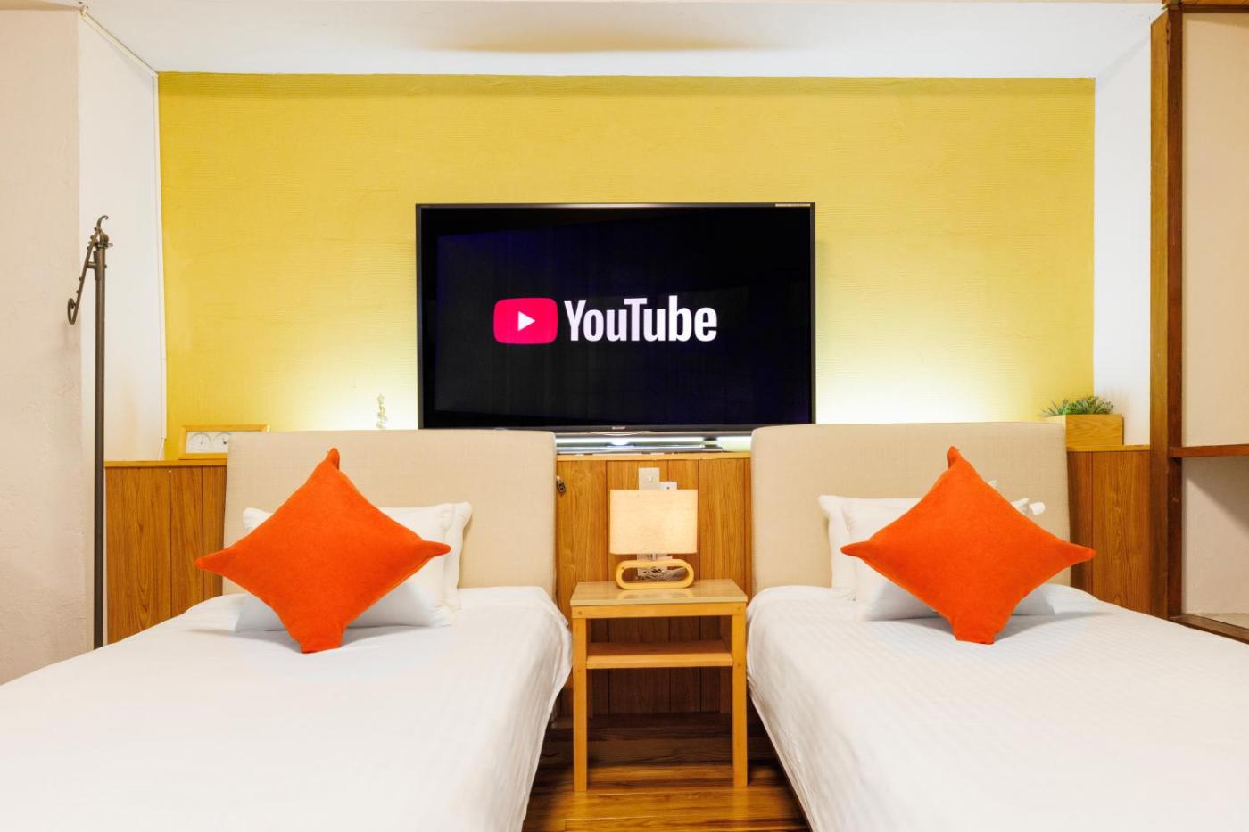 Two-Bedroom Apartment. This apartment comes with 2 bedrooms, a kitchenette and 1 bathroom with a bath or a shower and a hairdryer. The well-equipped kitchenette has a stovetop, a refrigerator and a microwave. The apartment features a flat-screen TV, a washing machine, tatami, as well as an electric kettle. The unit has 2 beds and 3 futons. ;