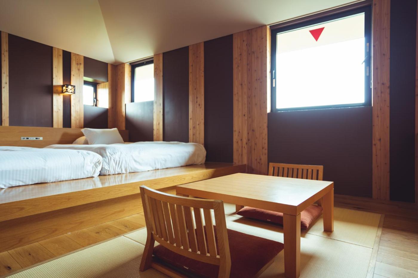 Superior Twin Room with Tatami Area -Inclusive. The spacious twin room offers air conditioning, a wardrobe, a balcony with ancourtyard view as well as a private bathroom featuring a bath. The unit offers 2 beds and 2 futons. ;