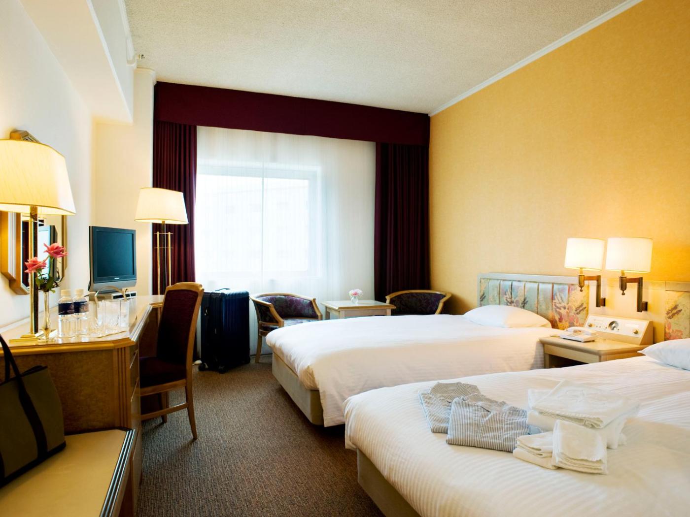 Executive Twin Room - Non-Smoking - Annex. Featuring ink paintings on traditional Japanese washi paper, this more spacious room features simple Japanese-style wooden decor and carpeted floors specifically designed for this room type. Rooms feature two small double beds 120 cm wide. Air-conditioned rooms come equipped with an Air-weave mattress, a desk, flat-screen TV, 2 USB outlets and a fridge. Free WiFi and wired internet is provided. There is an en suite bathroom with a shower, bathtub and free toiletries. ;