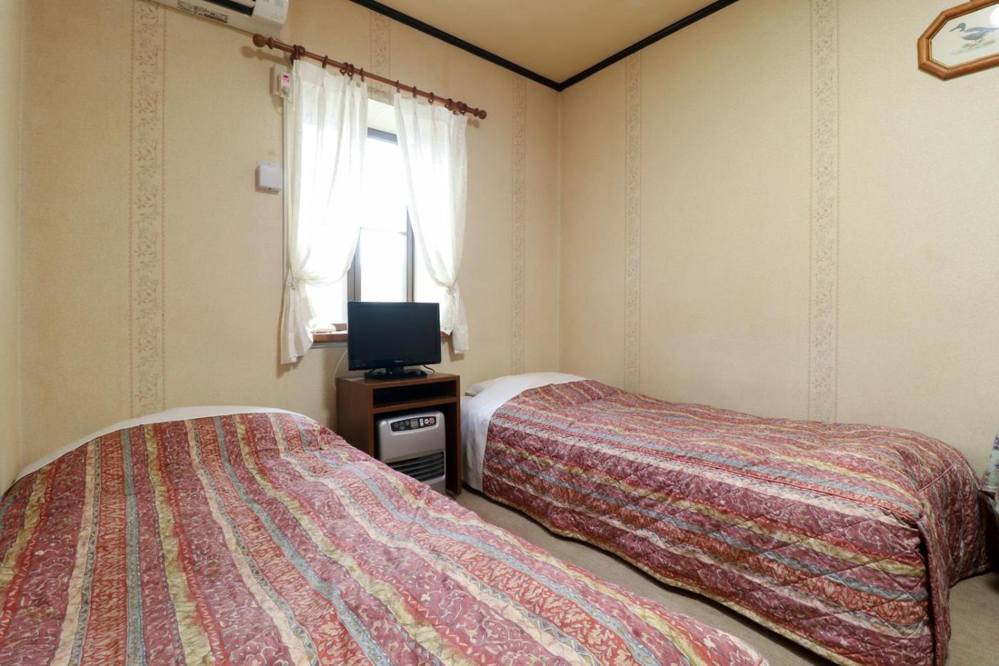 Twin Room. The private open-air bath is the standout feature of this twin room. The air-conditioned twin room features a flat-screen TV, a sofa, a carpeted floor, heating as well as mountain views. The unit has 4 beds. ;