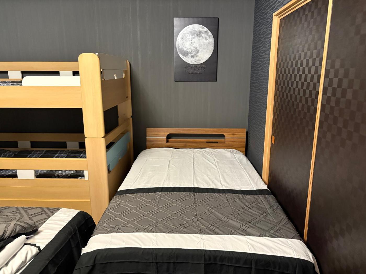 Two-Bedroom House. This holiday home comes with 1 living room, 2 separate bedrooms and 1 bathroom with a bath and free toiletries. The well-fitted kitchen has a stovetop, a refrigerator, kitchenware and a microwave. The holiday home features air conditioning, a washing machine, tatami, a tea and coffee maker and a flat-screen TV with streaming services. The unit has 5 beds and 4 futons.