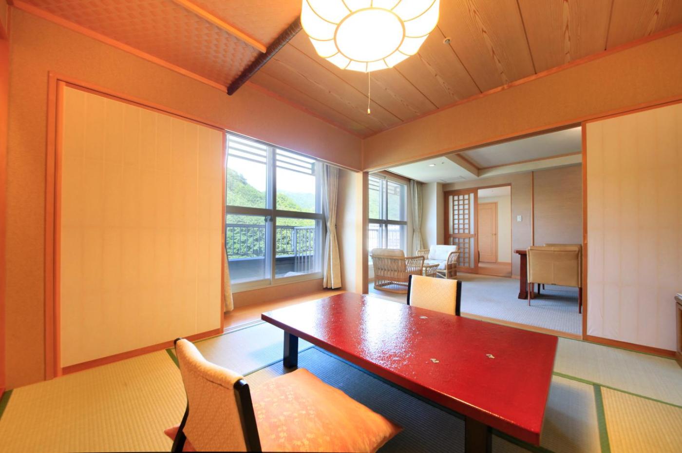 Japanese-Sytle Suite with Tatami Area and Open-Air Bath - Non-Smoking. The spacious quadruple room offers air conditioning, a tea and coffee maker, as well as a private bathroom boasting a bath and a shower. The unit has 2 beds and 3 futons.