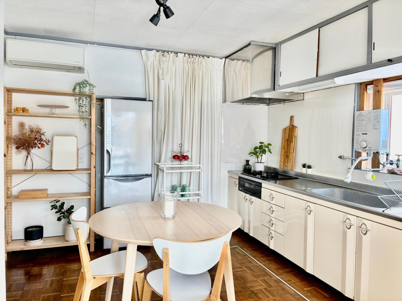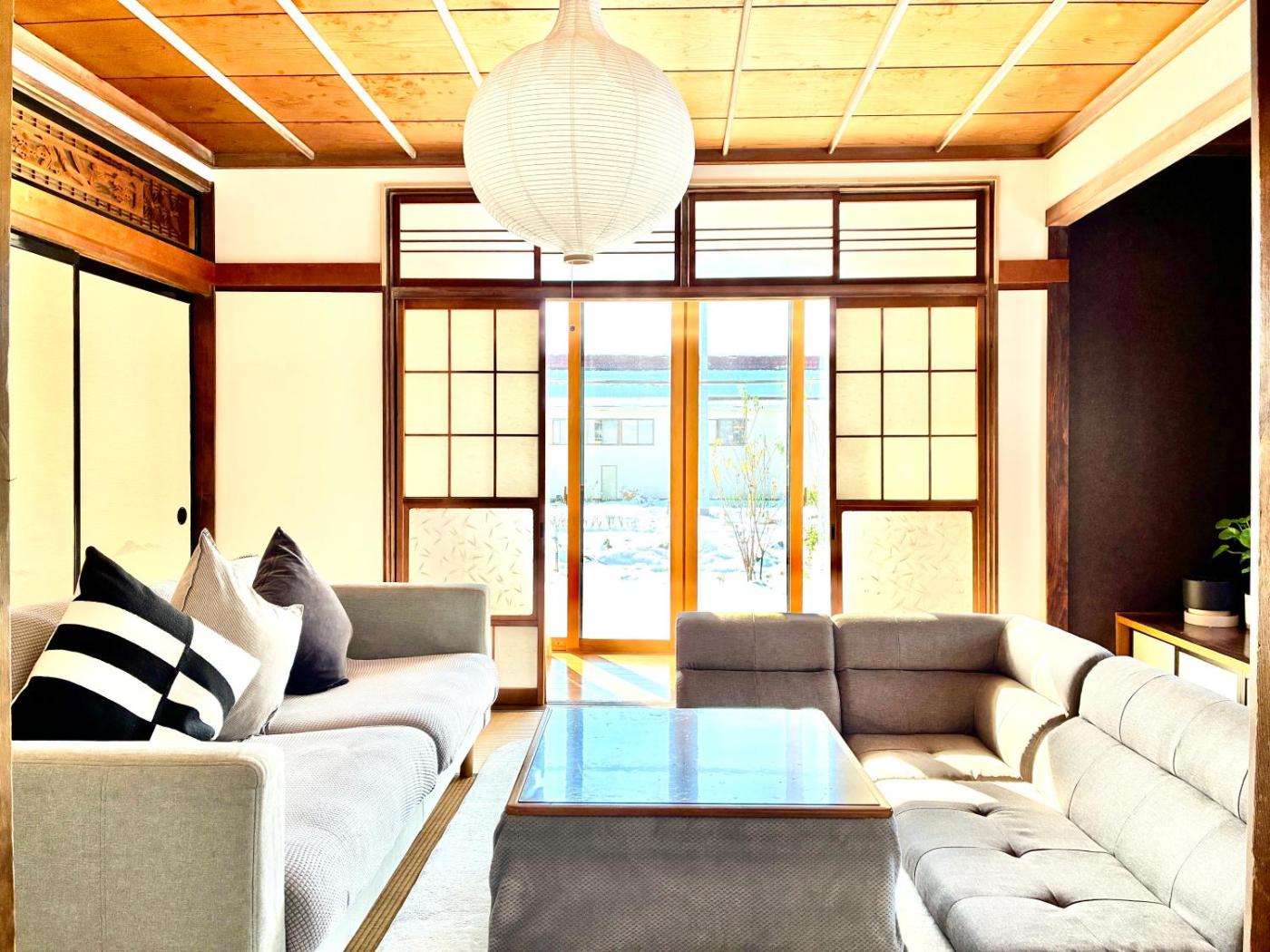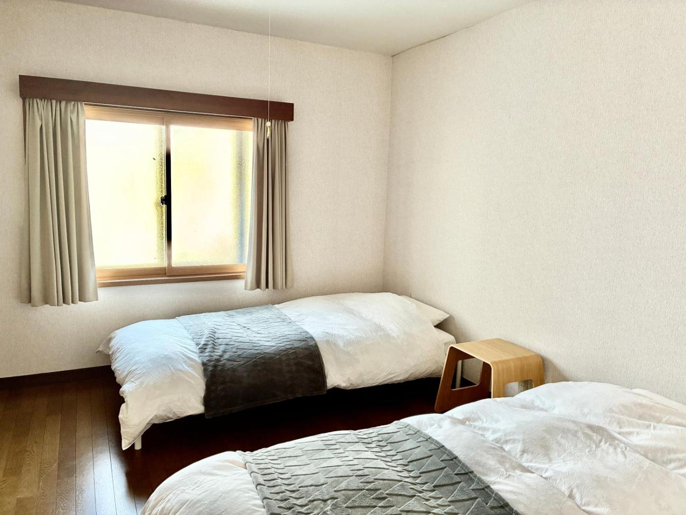 Four-Room Apartment. Boasting a private entrance, this air-conditioned apartment features 2 living rooms, 4 separate bedrooms and 1 bathroom with a bath and a shower. In the fully equipped kitchen, guests will find a stovetop, a refrigerator, kitchenware and a microwave. The spacious apartment features a washing machine, tatami, a tea and coffee maker, a flat-screen TV with streaming services, as well as garden views. The unit has 3 beds and 4 futons.