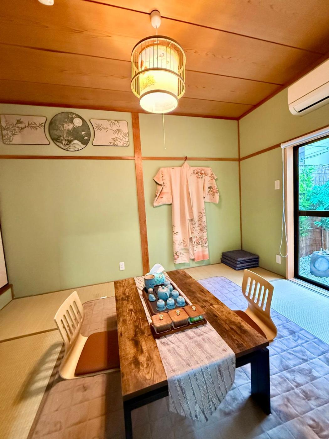 Three-Bedroom House. This holiday home features a hot tub. Boasting a private entrance, this air-conditioned holiday home features 2 living rooms, 3 separate bedrooms and 2 bathrooms with a walk-in shower and a bath. The well-equipped kitchen features a stovetop, a refrigerator, kitchenware and a microwave. The holiday home has tatami floors, a seating area with a flat-screen TV, a washing machine, soundproof walls as well as garden views. The unit has 3 beds and 2 futons.