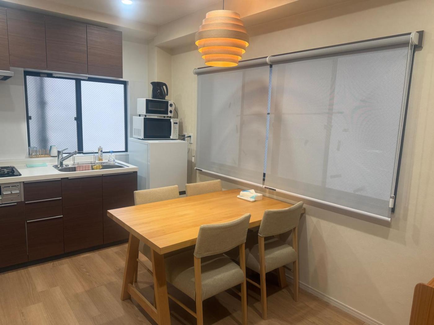 Two-Bedroom Apartment. Guests will have a special experience as the apartment features a hot tub. Featuring a private entrance, this air-conditioned apartment consists of 1 living room, 2 separate bedrooms and 1 bathroom with a walk-in shower and a bath. The well-fitted kitchen features a stovetop, a refrigerator, kitchenware and an oven. The apartment provides a washing machine, tatami, soundproof walls as well as a terrace with city views. The unit offers 4 beds.