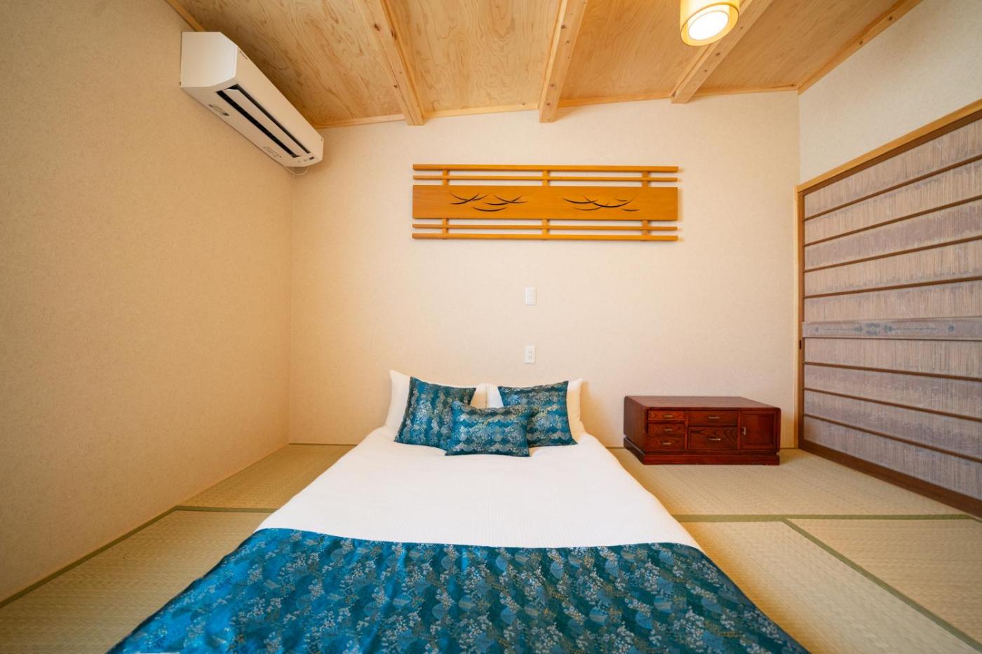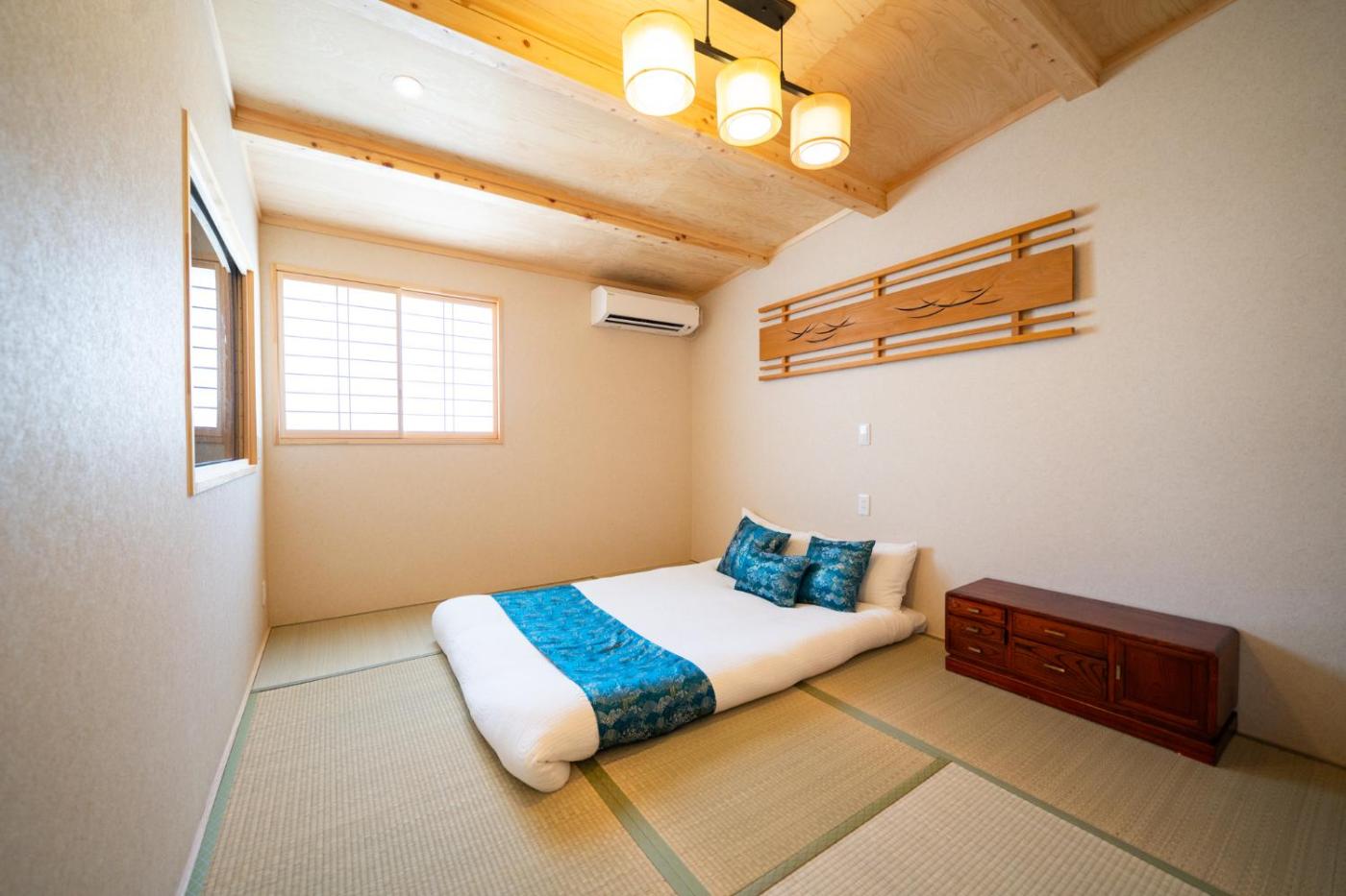 Villa. This air-conditioned villa comprises 2 living rooms, 7 separate bedrooms and 2 bathrooms with a bath. The villas kitchen, which features kitchenware, is available for cooking and storing food. The villa provides a washing machine, tatami, heating along with a balcony. The unit offers 8 beds and 4 futons.