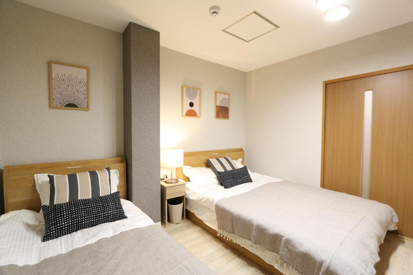 Two-Bedroom Apartment. The hot tub is a top feature of this apartment. This apartment comes with 1 living room, 2 separate bedrooms and 1 bathroom with a bath and free toiletries. The well-equipped kitchen has a stovetop, a refrigerator, kitchenware and a microwave. The air-conditioned apartment features a flat-screen TV with cable channels, a washing machine, tatami, a dining area as well as city views. The unit has 5 beds. ;