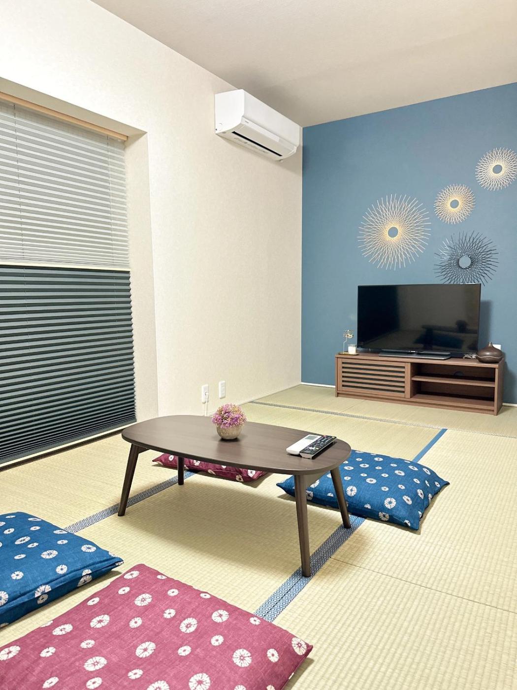 Three-Bedroom Apartment. This apartment features a hot tub. This spacious apartment features 1 living room, 3 separate bedrooms and 1 bathroom with a bath and free toiletries. A kitchen fitted with a refrigerator, kitchenware and a microwave is available for cooking and storing food. This apartment is air-conditioned and has a flat-screen TV, a washing machine, tatami and a dining area. The unit has 3 beds and 4 futons.