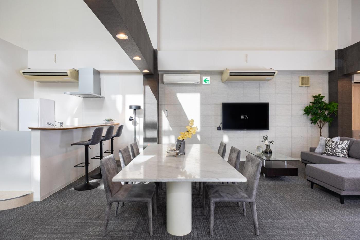 Suite. This holiday home has a stovetop, sofa and kitchenware. Please note that futon will be provided only if the number of guest is more than 9 people. ;
