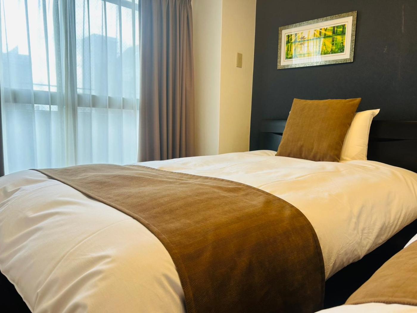 Two-Bedroom Apartment. This air-conditioned apartment comes with 1 living room, 2 separate bedrooms and 1 bathroom with a bath. In the well-fitted kitchen, guests will find a refrigerator, kitchenware, a microwave and an electric kettle. This apartment has a washing machine, tatami, a TV and a balcony. The unit has 3 beds and 3 futons.