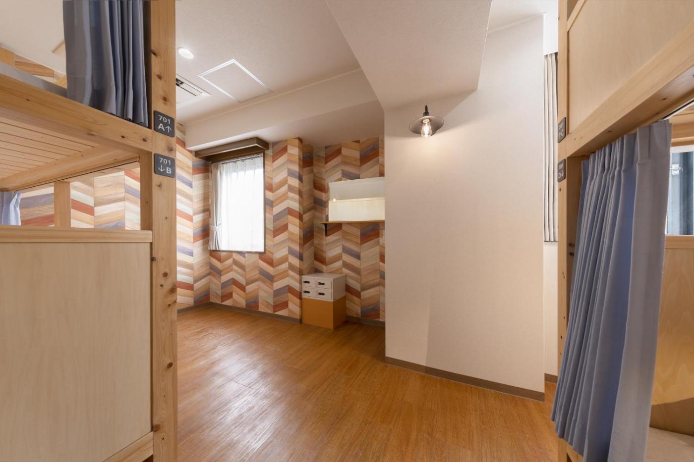 Family Room with Shared Bathroom(6 Adults). This family room is air-conditioned and features a shared bathroom with a shared wash basin, a safe deposit box and city views. Guests can find WiFi access, flat-screen TV, towels, toothbrush, pajamas, slippers and a shared refrigerator. The unit offers 6 beds. ;