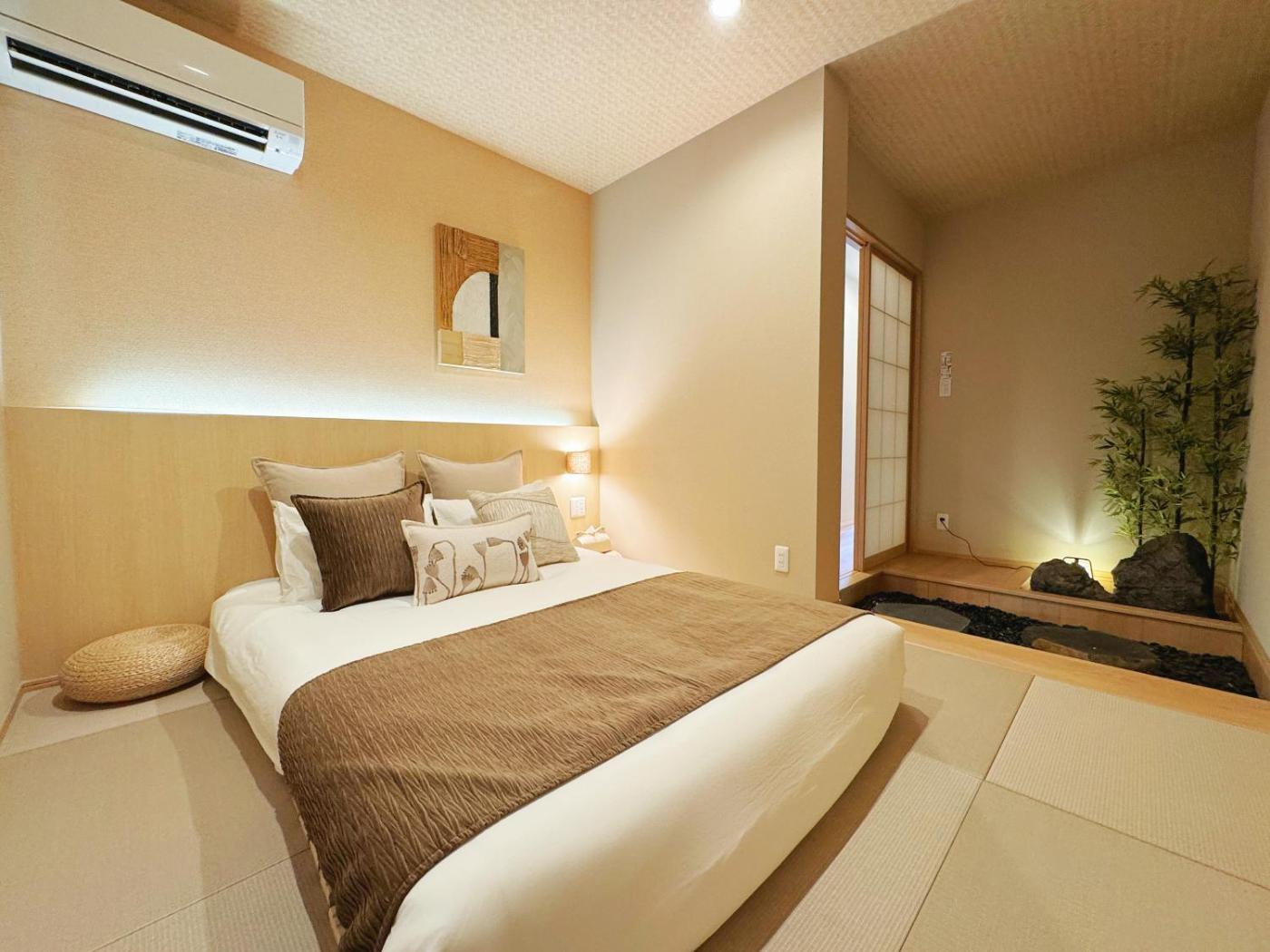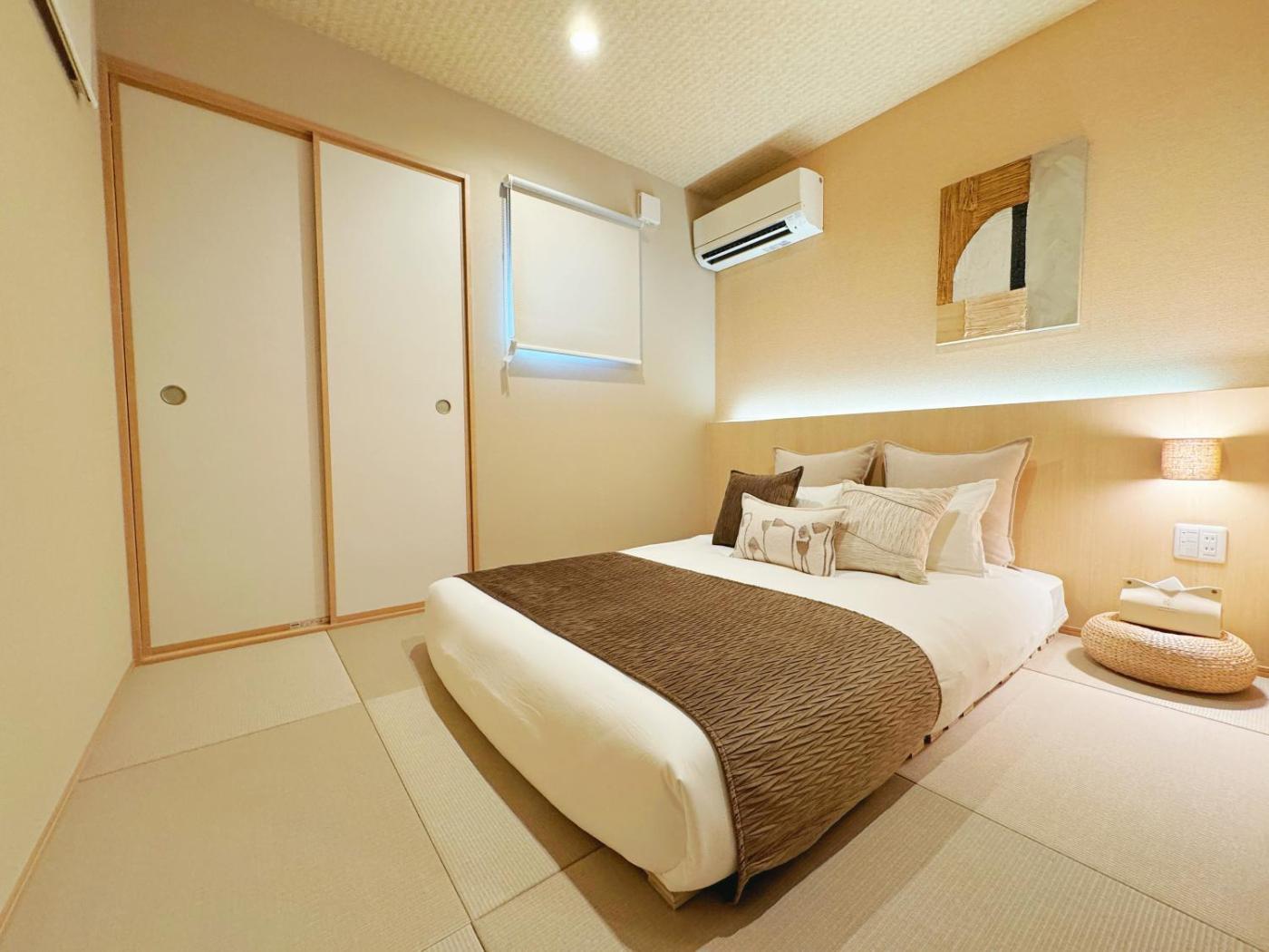 Three-Bedroom Villa. Featuring a private entrance, this air-conditioned villa is comprised of a kitchen, 3 bedrooms and 1 bathroom with a bath and a shower. In the well-fitted kitchen, guests will find a stovetop, a refrigerator, kitchenware and an oven. This villa features a washing machine, tatami, a TV and a balcony. The unit offers 4 beds.
