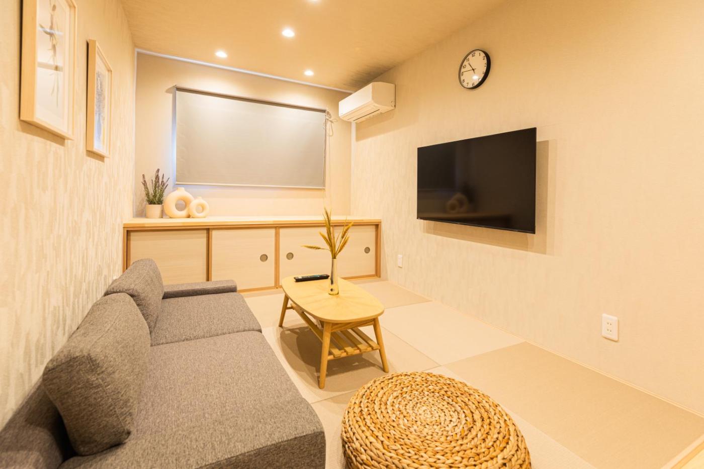 One-Bedroom Villa. Boasting a private entrance, this air-conditioned villa includes 1 living room, 1 separate bedroom and 1 bathroom with a shower and a hairdryer. In the kitchen, guests will find a stovetop, a refrigerator, kitchenware and a microwave. The villa offers a washing machine, tatami, an electric kettle, heating, as well as a flat-screen TV. The unit has 2 beds.