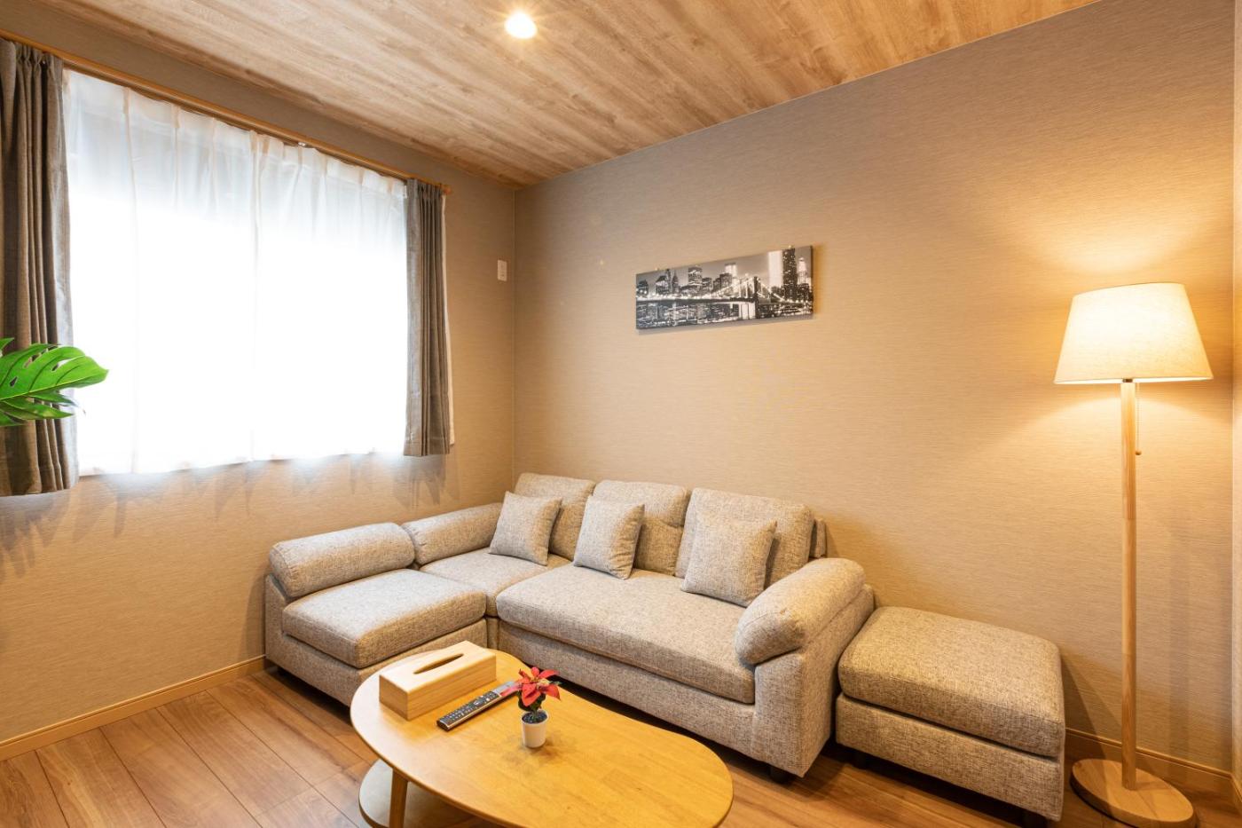 Three-Bedroom Villa. Boasting a private entrance, this air-conditioned villa includes 1 living room, 3 separate bedrooms and 1 bathroom with a bath and a shower. In the fully equipped kitchen, guests will find a stovetop, a refrigerator, kitchenware and a microwave. Featuring a balcony, this villa also offers a washing machine, tatami and a flat-screen TV. The unit has 4 beds.
