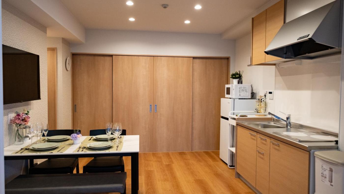 Two-Bedroom Studio Apartment. This apartment provides a hot tub. Featuring a private entrance, this air-conditioned apartment comprises a kitchen, 2 bedrooms and 1 bathroom with a walk-in shower and a bath. Meals can be prepared in the kitchen, which comes with a stovetop, a refrigerator, kitchenware and a microwave. The apartment features tatami floors, a seating area with a flat-screen TV with streaming services, a washing machine, a tea and coffee maker, as well as a dining area. The unit offers 2 beds and 2 futons. ;