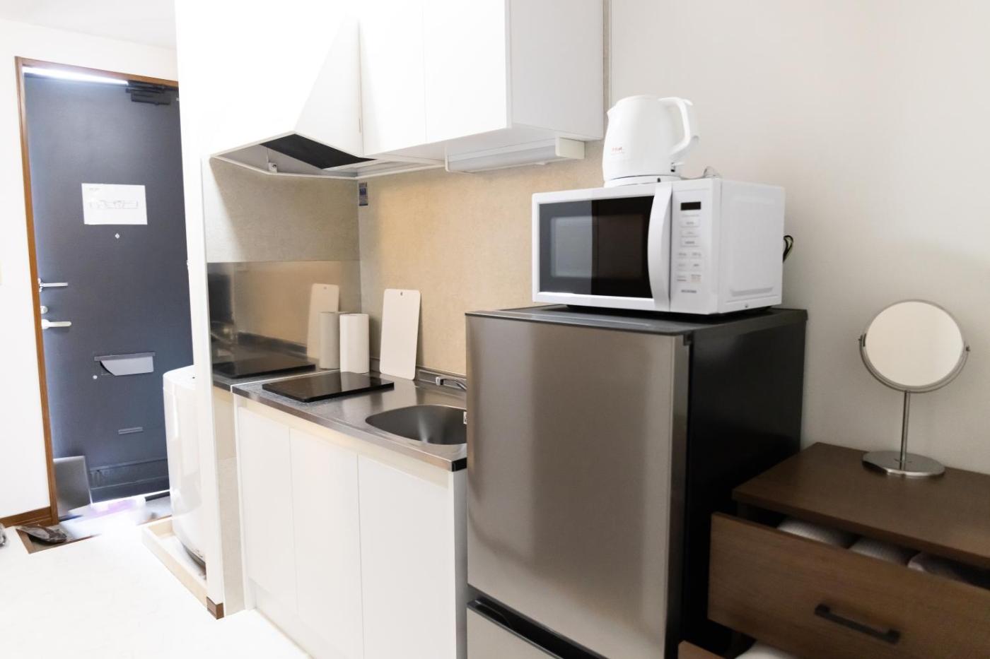 One-Bedroom Premier Apartment. The hot tub is the standout feature of this apartment. This apartment features 1 living room, 1 separate bedroom and 1 bathroom with a bath and free toiletries. Guests can make meals in the kitchen that has a stovetop, a refrigerator, a microwave and an electric kettle. The air-conditioned apartment features a flat-screen TV, a washing machine, a dining area and a wardrobe. The unit has 2 beds.