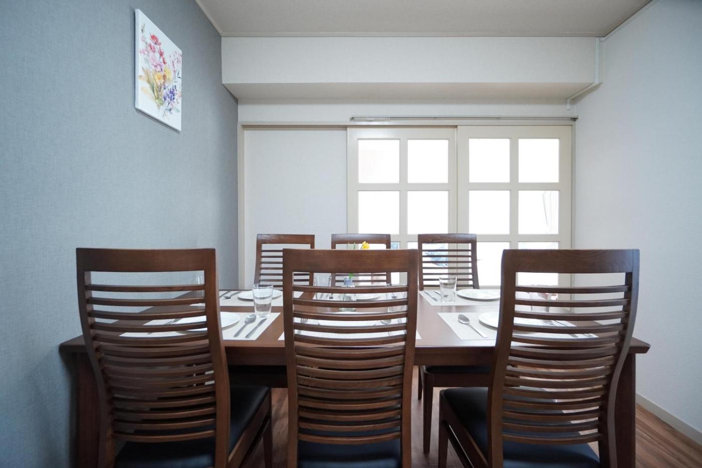 Three-Bedroom Apartment. The spacious apartment has 3 bedrooms and 1 bathroom with a bath and free toiletries. In the well-fitted kitchen, guests will find a stovetop, a refrigerator, kitchenware and a microwave. The air-conditioned apartment offers a flat-screen TV with streaming services, a washing machine, tatami, a dining area as well as city views. The unit has 4 beds and 2 futons.