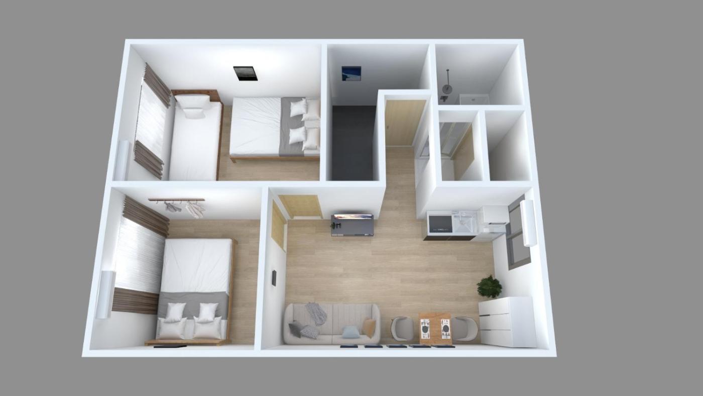 Two-Bedroom Apartment. The hot tub is a top feature of this apartment. Boasting a private entrance, this air-conditioned apartment comes with 1 living room, 2 separate bedrooms and 1 bathroom with a bath and a shower. In the well-fitted kitchen, guests will find a stovetop, a refrigerator, kitchenware and a microwave. The apartment features a washing machine, soundproof walls, a dining area, a wardrobe, as well as a flat-screen TV. The unit has 4 beds.