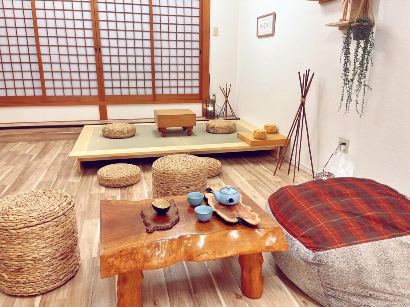 One-Bedroom Apartment. The apartments kitchen, which has a refrigerator and a microwave, is available for cooking and storing food. The air-conditioned apartment features a TV, a washing machine, tatami, soundproof walls as well as garden views. The unit has 3 beds and 1 futon.
