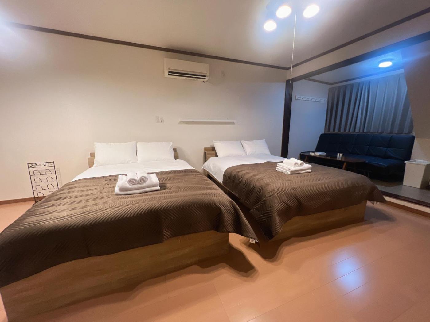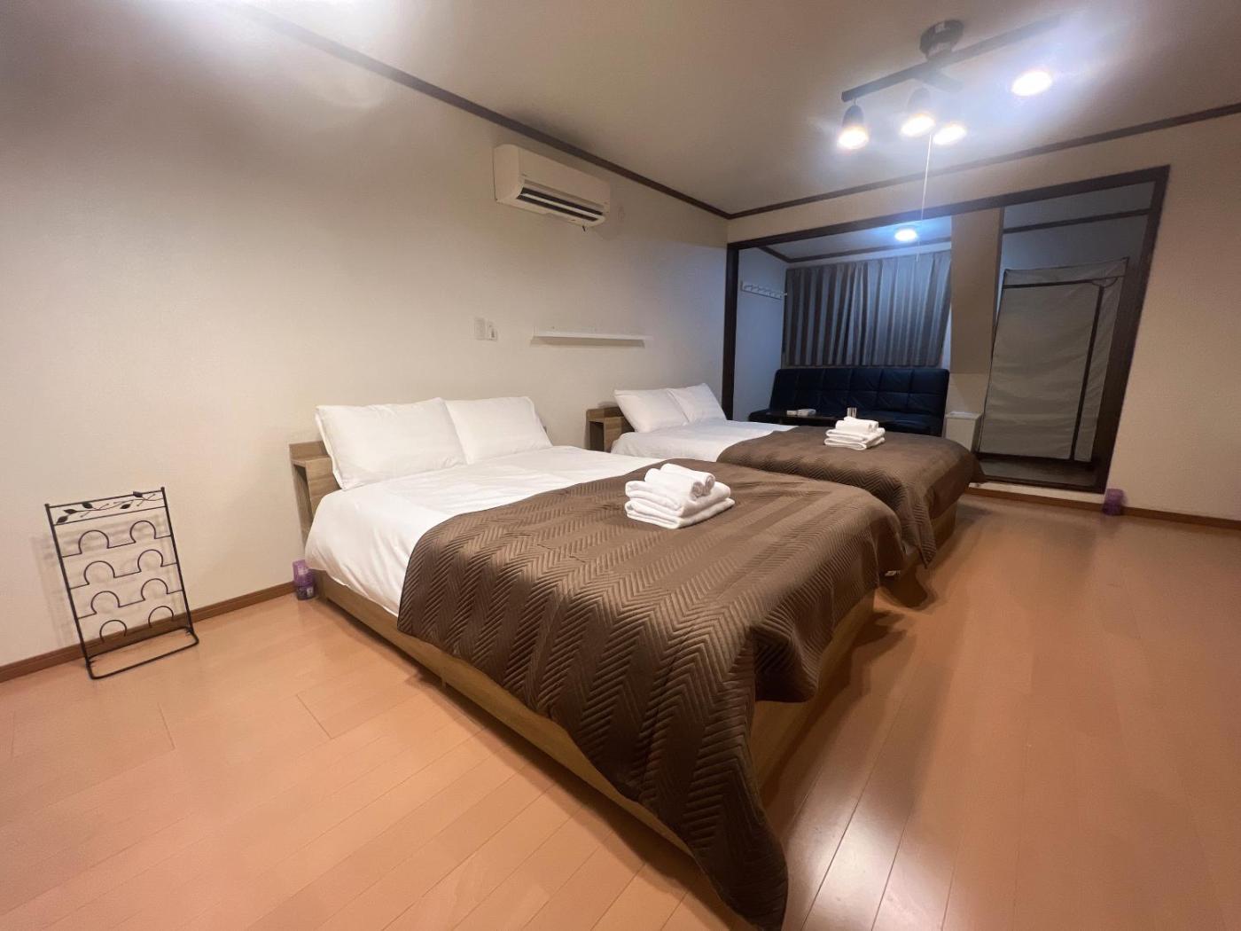 Quadruple Room. The quadruple room includes a private bathroom, well-fitted with a bath, a shower, a bidet, a hairdryer and slippers. The kitchenette has a refrigerator, a microwave and an electric kettle. This quadruple room is air-conditioned and has a seating area with a flat-screen TV, a washing machine, tatami, soundproof walls, as well as a wardrobe. The unit has 2 beds. ;