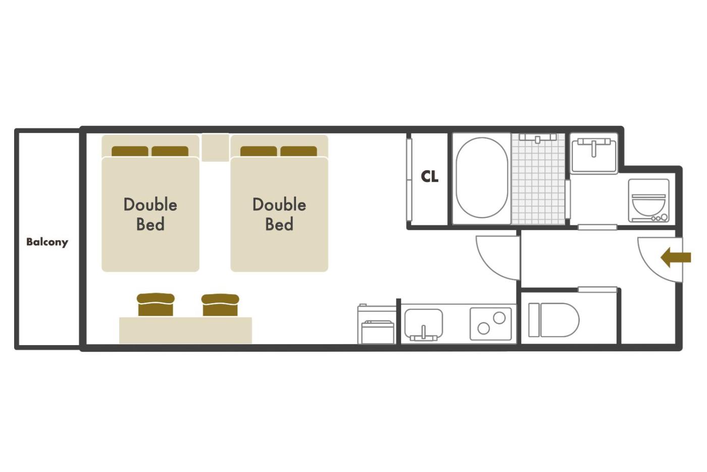 One-Bedroom Apartment. Featuring a private entrance, this air-conditioned apartment comprises 1 living room, 1 separate bedroom and 1 bathroom with a bath and a shower. The well-fitted kitchen features a stovetop, a refrigerator, kitchenware and a microwave. Boasting a balcony with city views, this apartment also provides a washing machine and a flat-screen TV. The unit offers 2 beds. ;