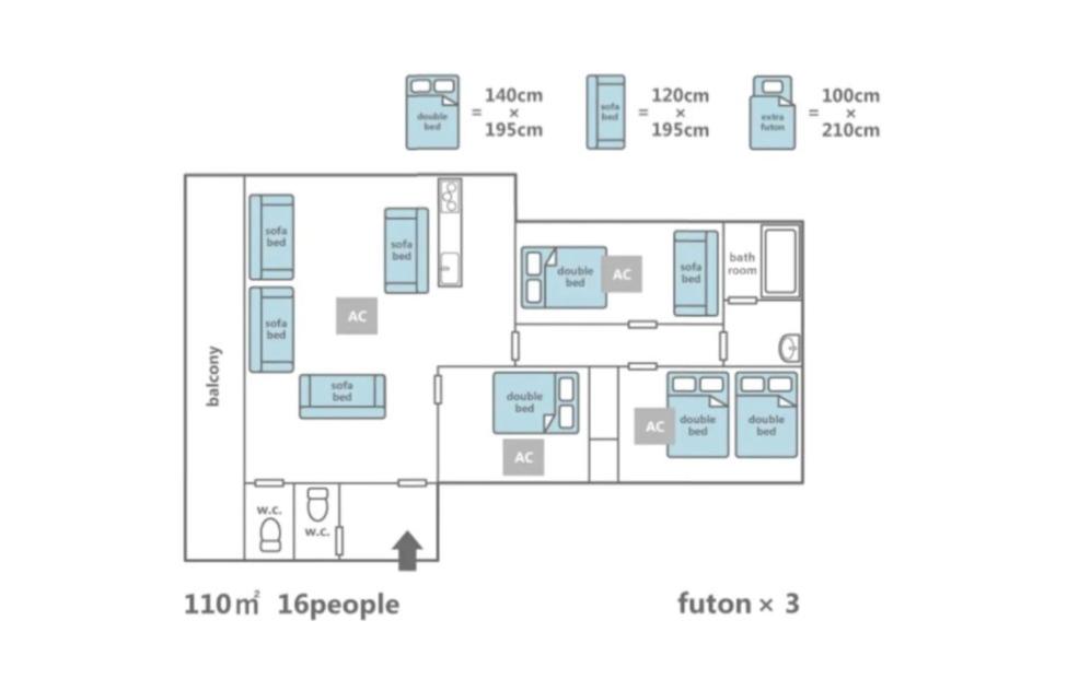Apartment. This spacious apartment comes with 1 living room, 3 separate bedrooms and 1 bathroom with a hairdryer. Meals can be prepared in the kitchen, which is equipped with a stovetop, a refrigerator and a microwave. The apartment features a flat-screen TV, air conditioning, a washing machine, as well as heating. The unit has 9 beds and 3 futons.