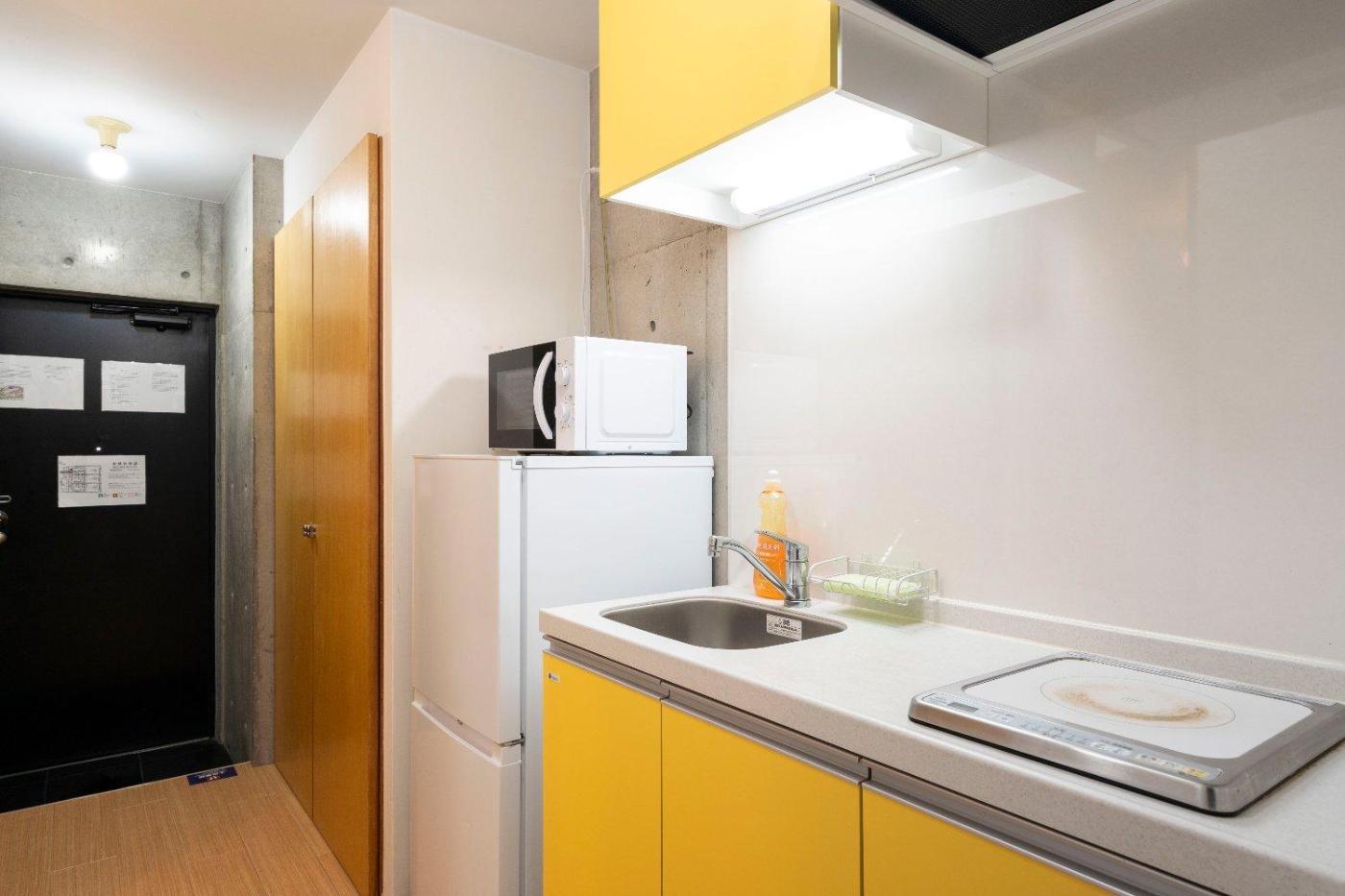 One-Bedroom Apartment. The air-conditioned apartment features 1 bedroom and 1 bathroom with a bath and a shower. Meals can be prepared in the kitchen, which comes with a stovetop, a refrigerator, kitchenware and a microwave. The apartment provides a washing machine, an electric kettle, heating along with a balcony. The unit offers 2 beds and 1 futon.