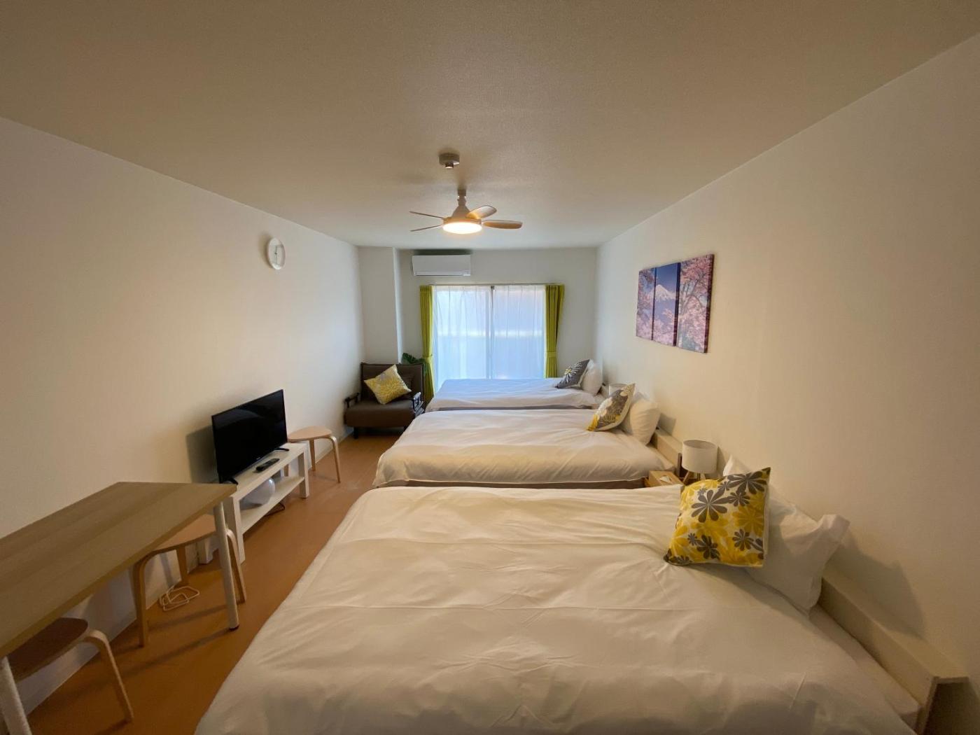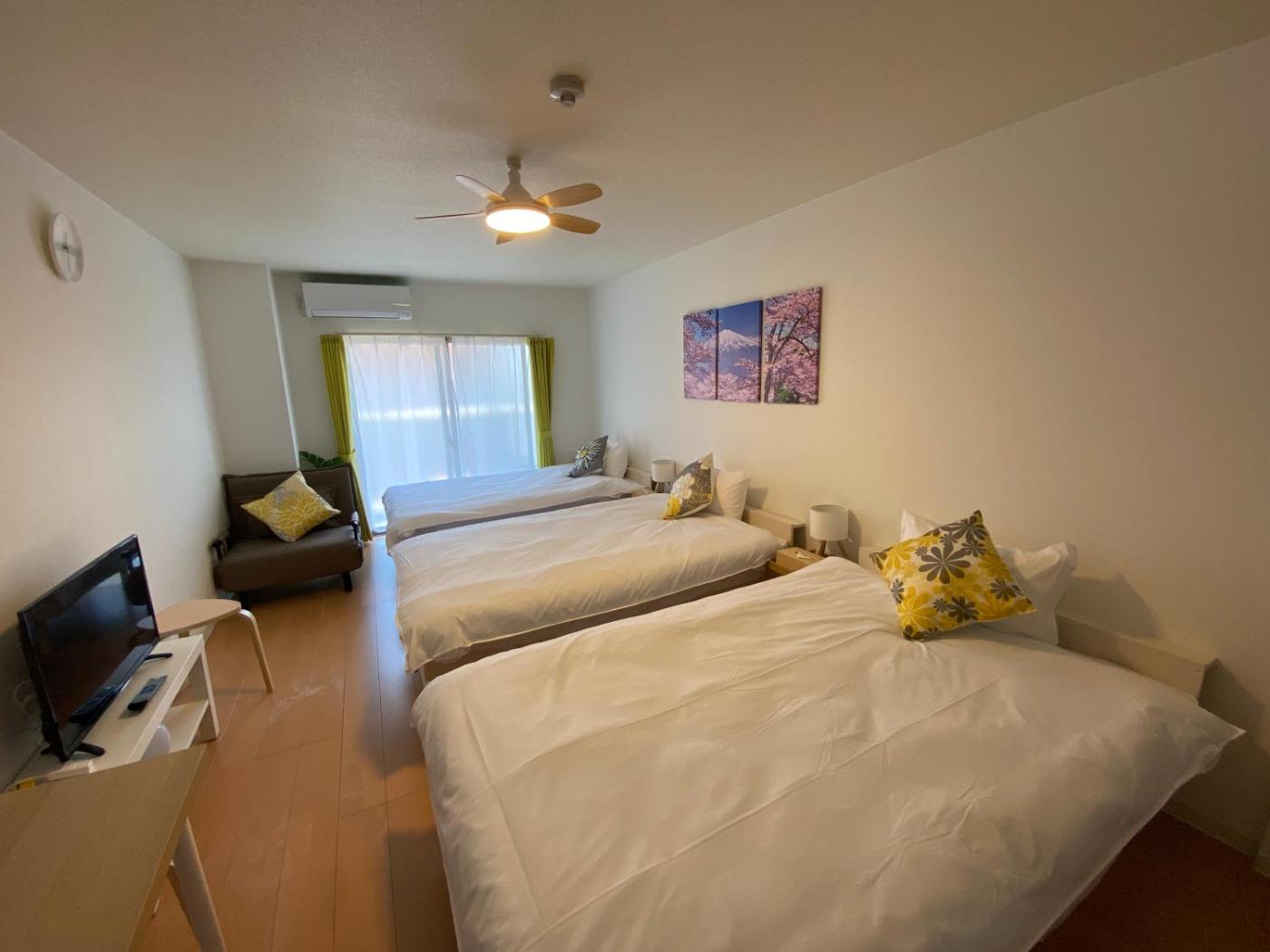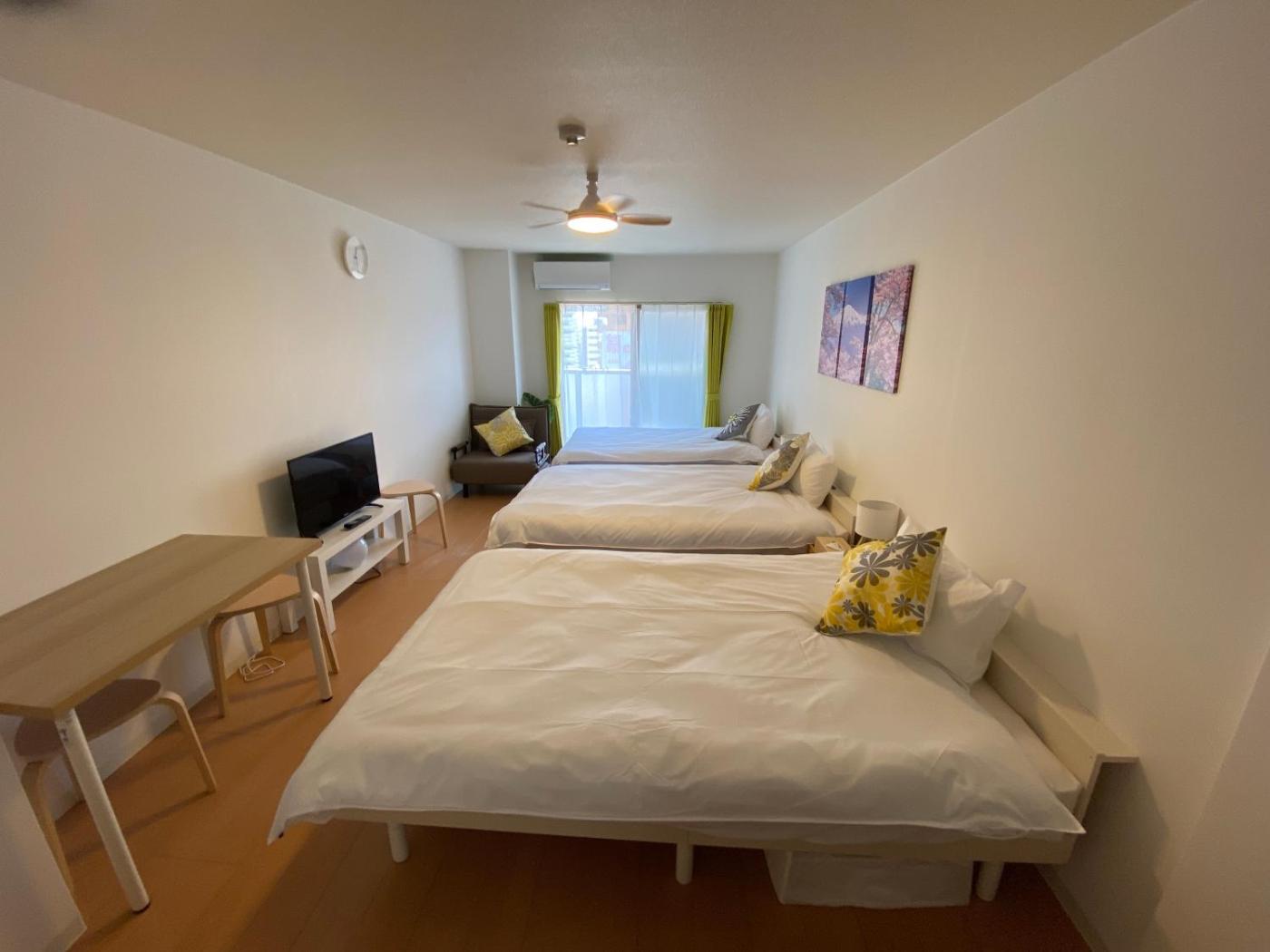 Quadruple Room with Balcony. The unit offers 4 beds and 1 futon.