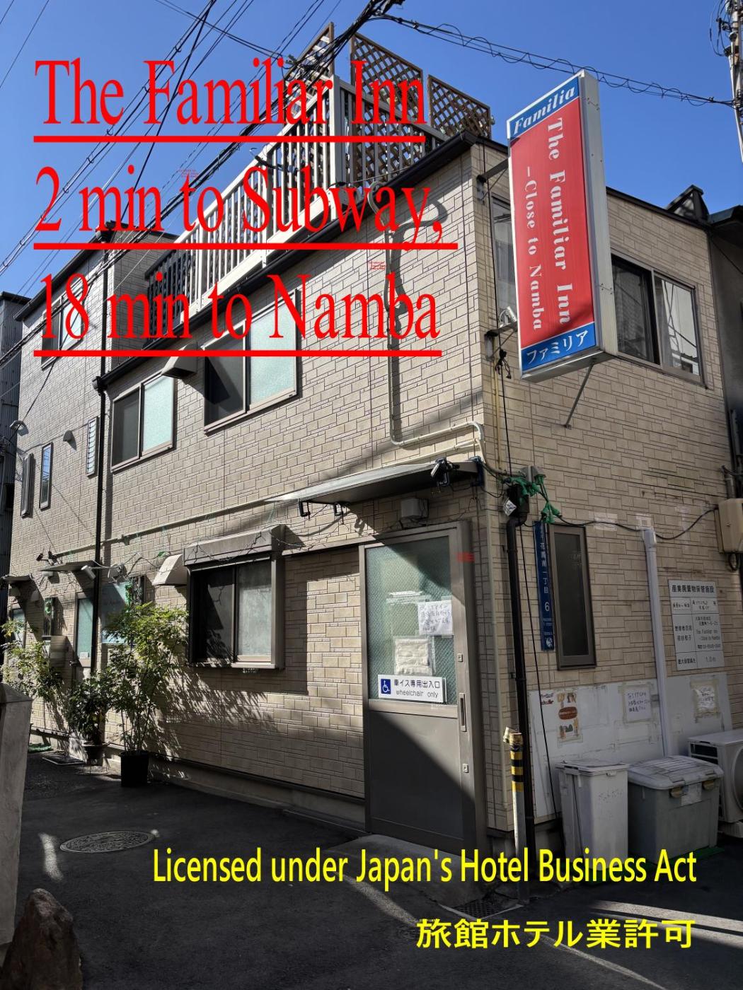 Attractively situated in the Nishinari Ward district of Osaka, The Familiar Inn ー 旅館ホテル業 isless than 1 km from Tsurumibashi Shopping Street, a 17-minute walk from Tsumori Shrine and 1.8 km from Tsutenkaku. This 3-star inn offers luggage storage space and free WiFi. The property is non-smoking and is situated 700 metres from Matsunomiya Shrine.