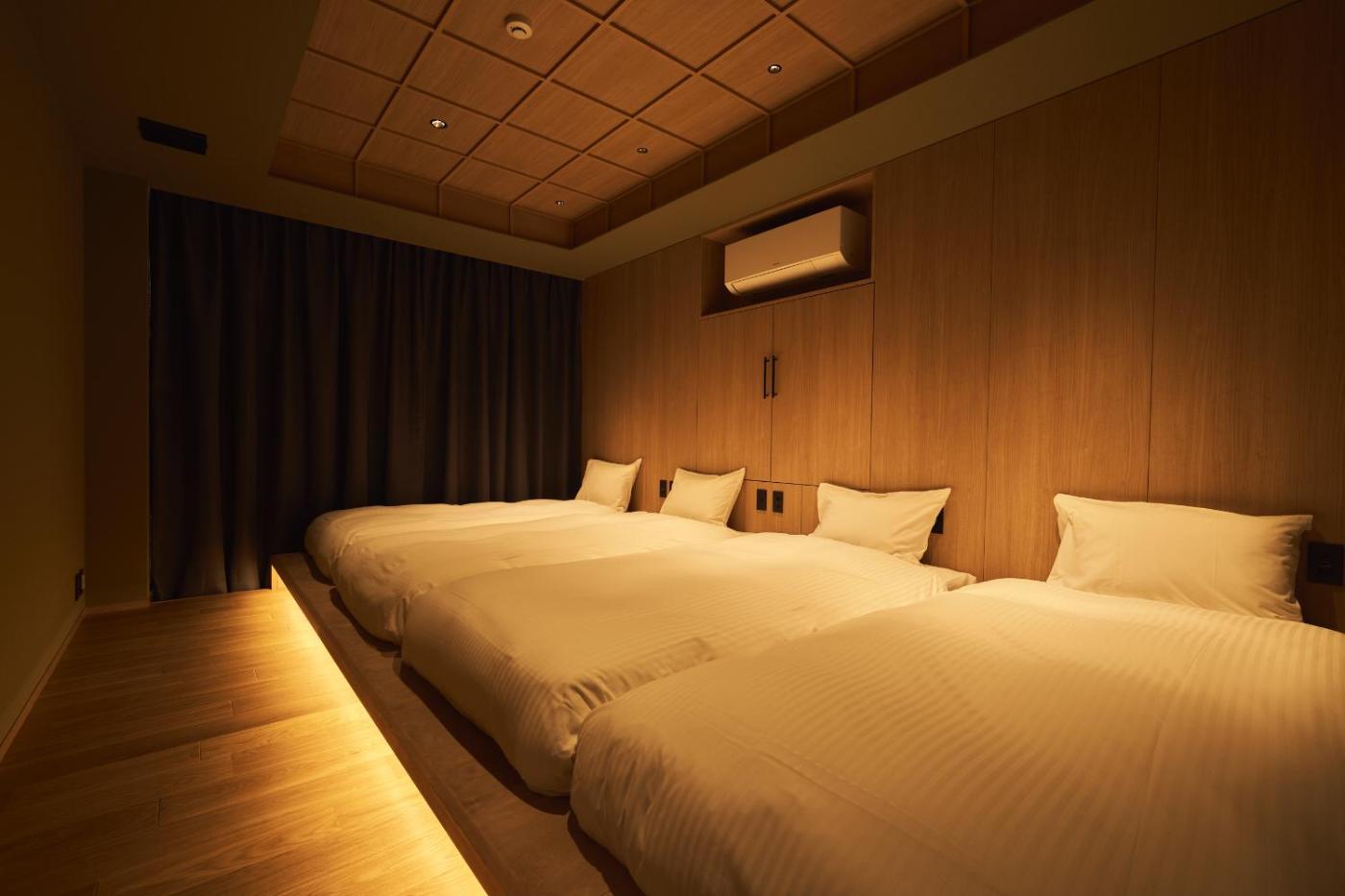 Three-Bedroom Deluxe Apartment. The spacious apartment has 3 bedrooms and 1 bathroom with a bath and free toiletries. The fully equipped kitchenette features a refrigerator, kitchenware and a microwave. The apartment offers air conditioning, a washing machine, tatami, a tea and coffee maker and a flat-screen TV. The unit has 6 beds and 2 futons. ;