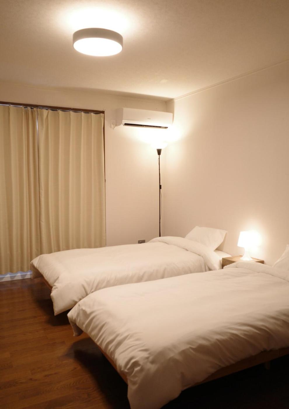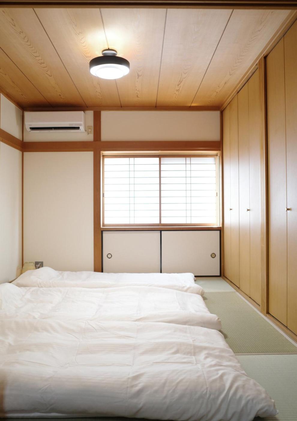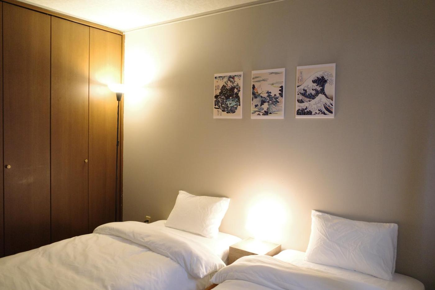Three-Bedroom Apartment. The spacious apartment has 3 bedrooms and 1 bathroom with a bath and free toiletries. The kitchen features a refrigerator, kitchenware and a microwave. The air-conditioned apartment features a flat-screen TV, a washing machine, tatami and a tea and coffee maker. The unit has 4 beds and 3 futons.