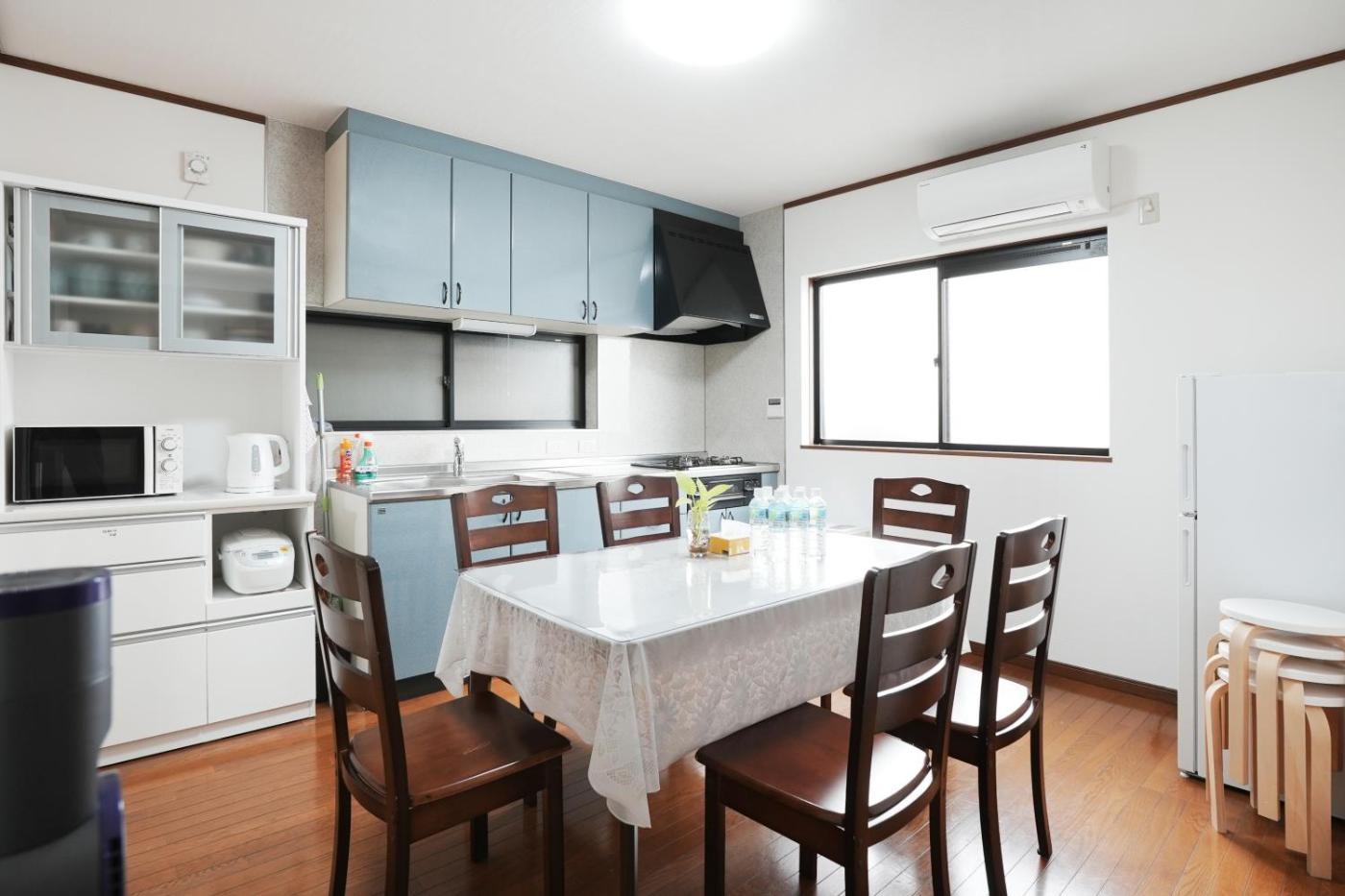 Three-Bedroom Villa. Guests will have a special experience as the villa features a hot tub. This air-conditioned villa consists of 1 living room, 3 separate bedrooms and 2 bathrooms with a bath. The villas kitchen, which features a refrigerator and kitchenware, is available for cooking and storing food. The villa provides a washing machine, tatami, as well as a terrace and a balcony. The unit offers 6 beds.
