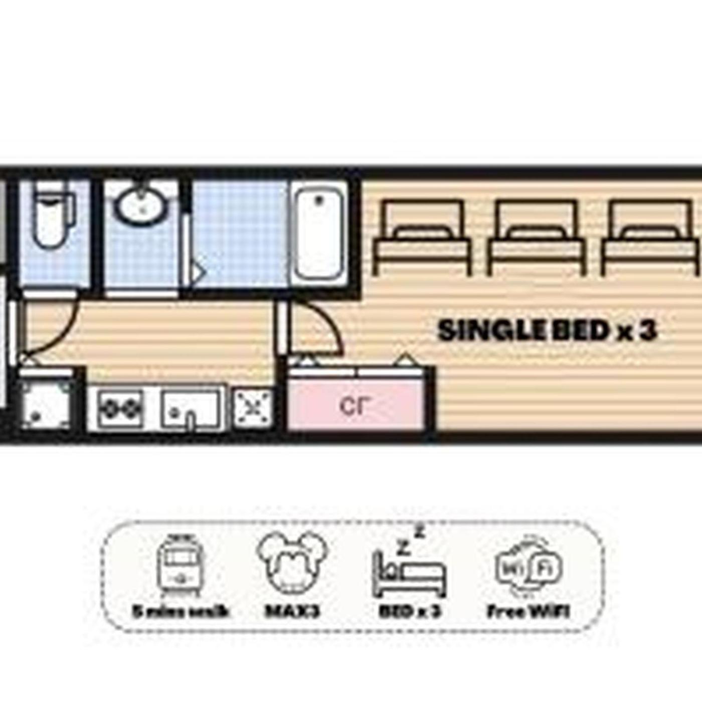 One-Bedroom Apartment. Featuring a private entrance, this air-conditioned apartment comprises a kitchen, 1 bedroom and 1 bathroom with a bath and a shower. The well-fitted kitchen features a stovetop, a refrigerator, kitchenware and a microwave. Boasting a balcony, this apartment also provides a washing machine, a wardrobe and a flat-screen TV. The unit offers 3 beds.