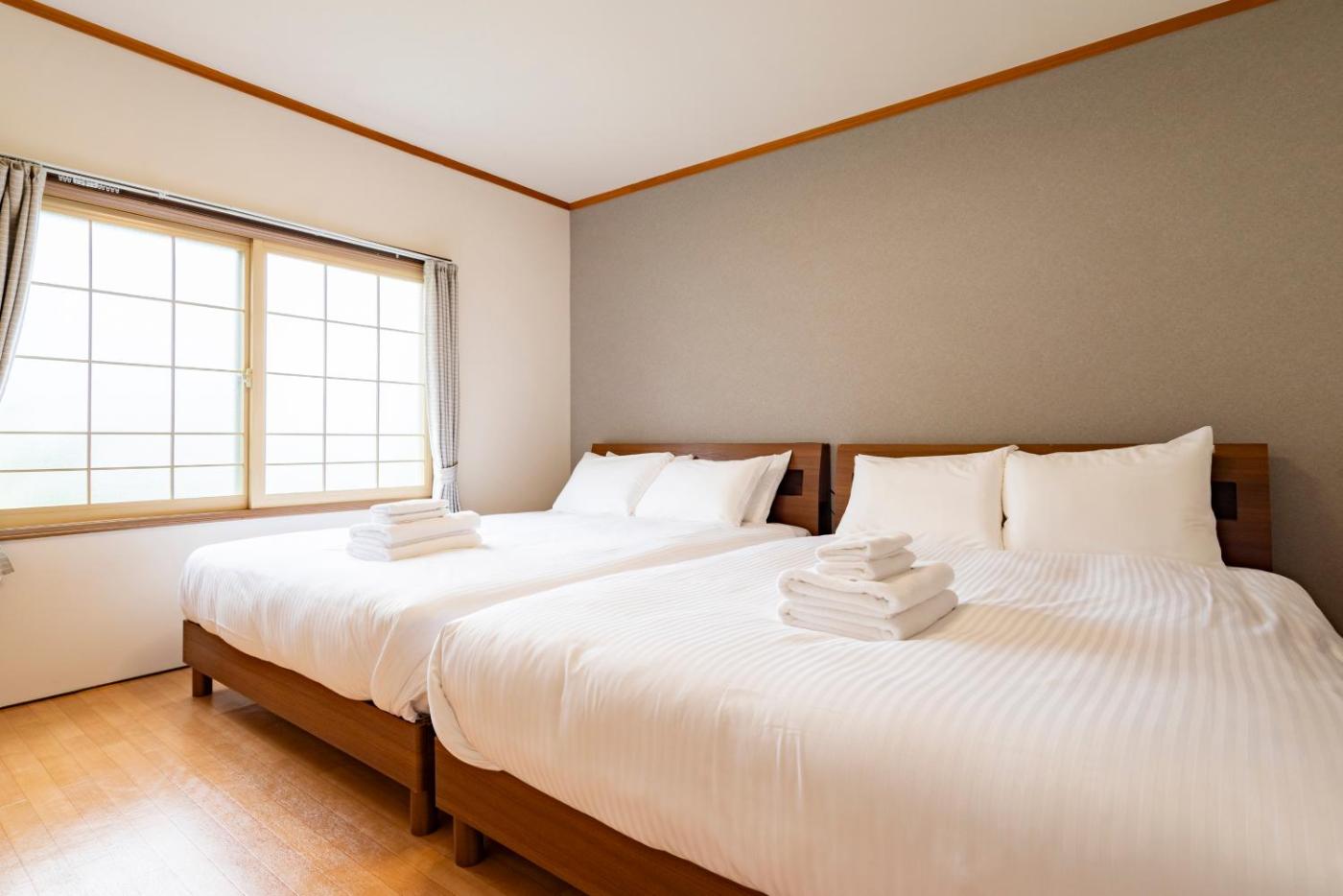 Four-Bedroom Apartment. This spacious apartment consists of 1 living room, 4 separate bedrooms and 2 bathrooms with a bath and a shower. Guests can make meals in the kitchen that is equipped with a stovetop, a refrigerator, kitchenware and a microwave. The air-conditioned apartment provides a TV with streaming services, a washing machine, tatami, a coffee machine as well as sea views. The unit offers 7 beds.