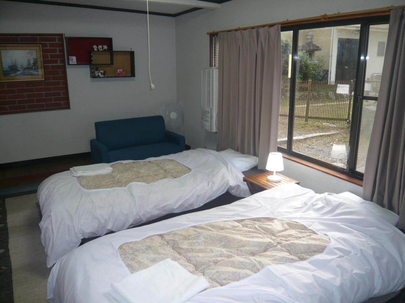 Japanese-Style Quadruple Room. The quadruple room offers air conditioning, tatami, as well as a private bathroom featuring a shower and a bidet. The unit offers 4 futons. ;