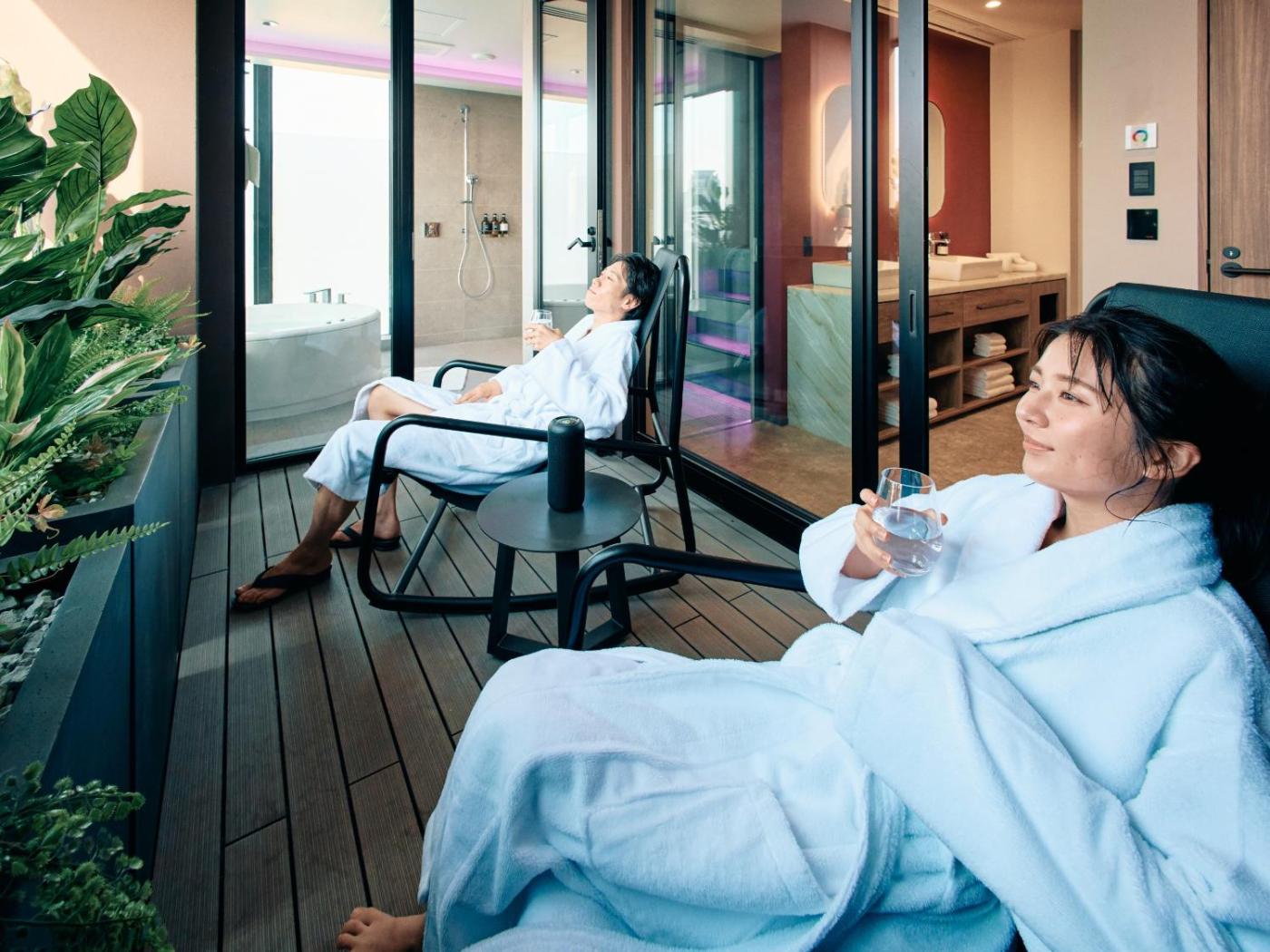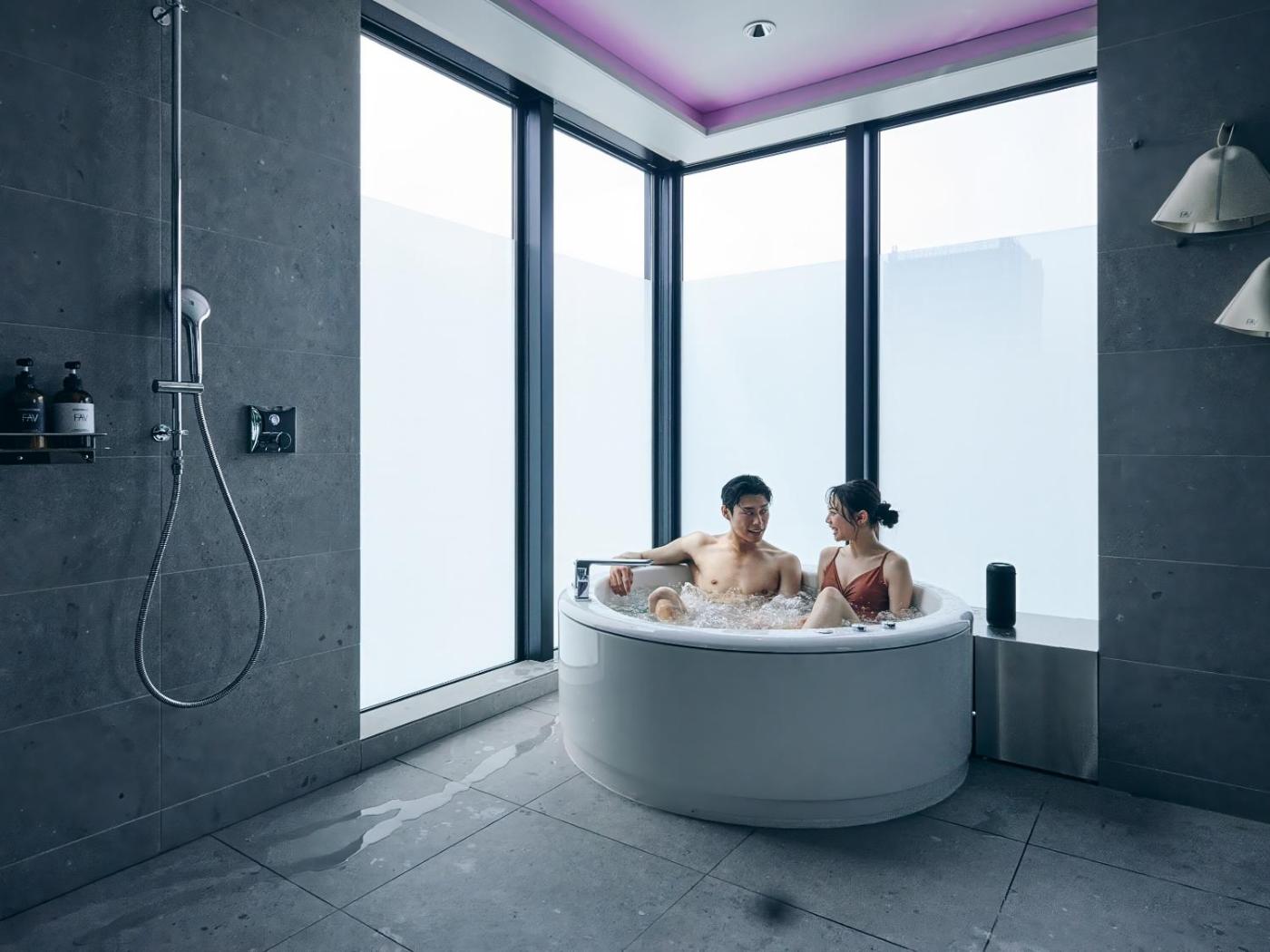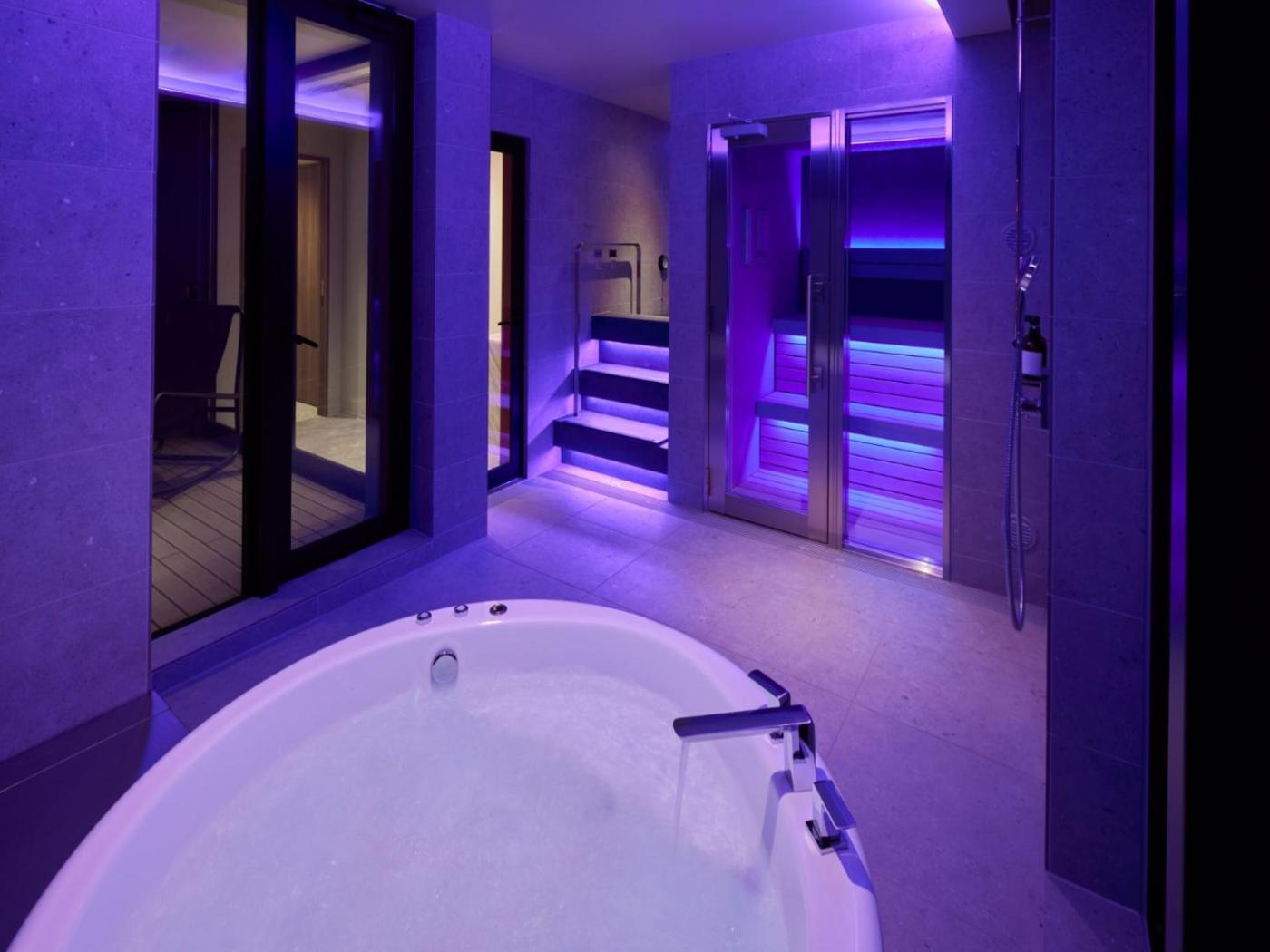 Twin Suite Room with Sauna. Guests will have a special experience as this suite provides a hot tub and a sauna. This spacious suite is comprised of 1 living room, 1 separate bedroom and 1 bathroom with a bath and free toiletries. The kitchenette comes with a refrigerator, kitchenware and a microwave. The air-conditioned suite offers a flat-screen TV, a safe deposit box, an electric kettle and a sofa. The unit offers 2 beds. ;