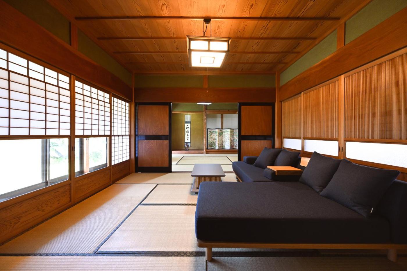 Deluxe Villa. Featuring a private entrance, this air-conditioned villa comprises 2 living rooms, 6 separate bedrooms and 1 bathroom with a bath and a shower. In the fully equipped kitchen, guests will find a stovetop, a refrigerator, kitchenware and an oven. The villa comes with a washing machine, tatami, a dining area as well as an electric kettle. The unit offers 9 beds.