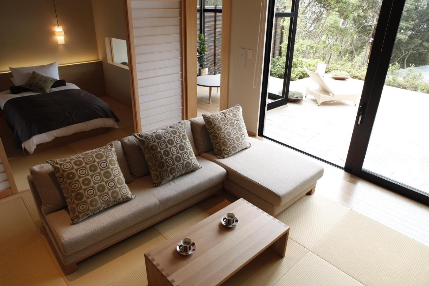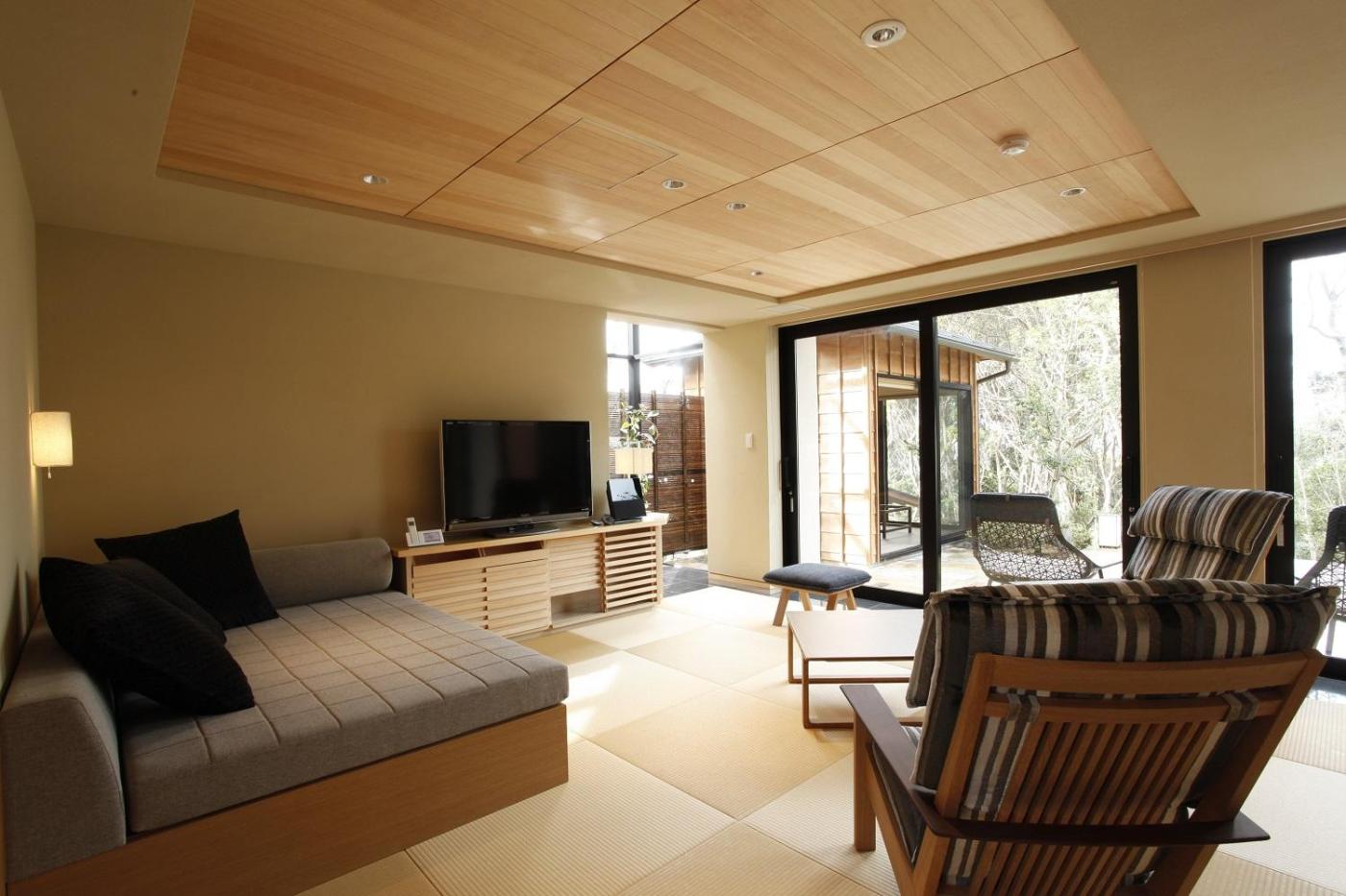 Deluxe Suite with Open-Air Bath and Ocean View. The private open-air bath is the standout feature of this quadruple room. The spacious quadruple room features air conditioning, a tea and coffee maker, a terrace with sea views as well as a private bathroom boasting a bath. The unit has 3 beds.