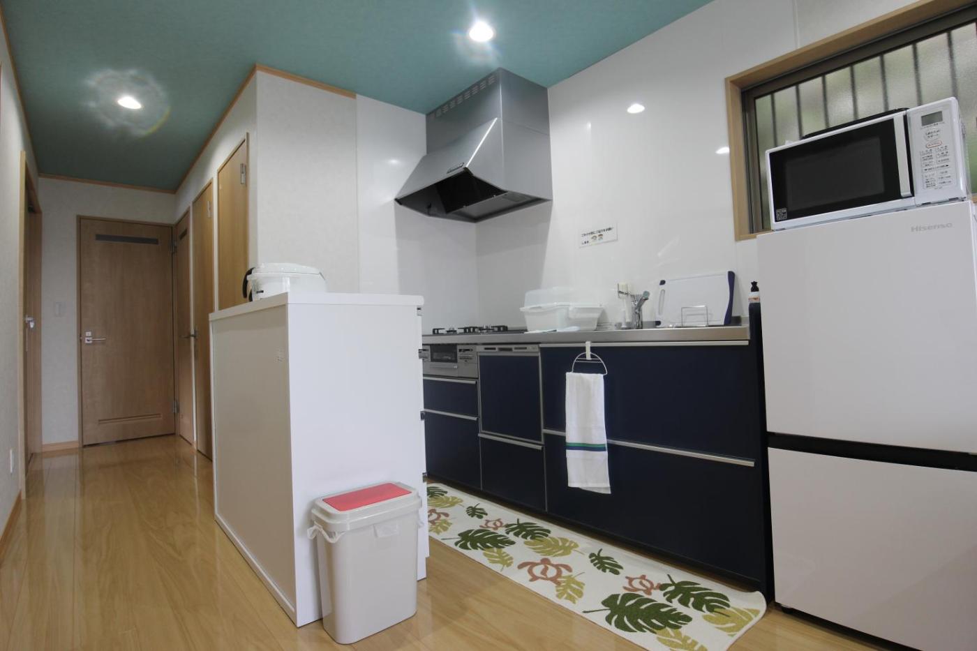 Three-Bedroom House. Boasting a private entrance, this air-conditioned holiday home comes with a kitchen, 3 bedrooms and 1 bathroom with a bath and a shower. The fully equipped kitchen features a stovetop, a refrigerator, a dishwasher and kitchenware. The holiday home has tatami floors, a seating area with a flat-screen TV, a washing machine, a dining area as well as river views. The unit has 12 futons.