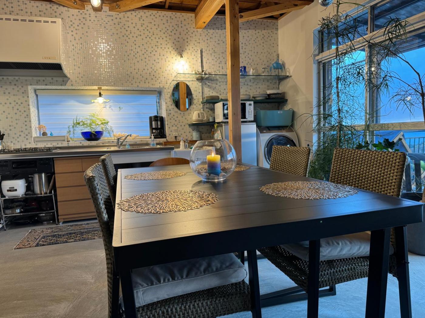 Apartment with View. This spacious apartment features 1 living room, 3 separate bedrooms and 1 bathroom with a bath and free toiletries. The apartments kitchen, which has a refrigerator and a microwave, is available for cooking and storing food. The air-conditioned apartment features a flat-screen TV with streaming services, a washing machine, tatami, a tea and coffee maker as well as sea views. The unit has 2 beds and 4 futons.
